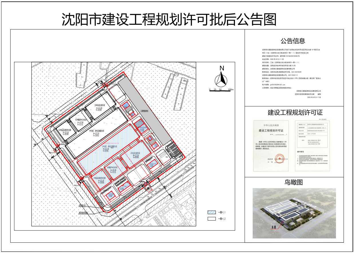 沈阳恒大新能源科技发展有限公司位于沈阳经济技术开发区开发大路76号的工业项目 工业(沈阳恒大动力电池项目一期-1.1)规划许可批后公告