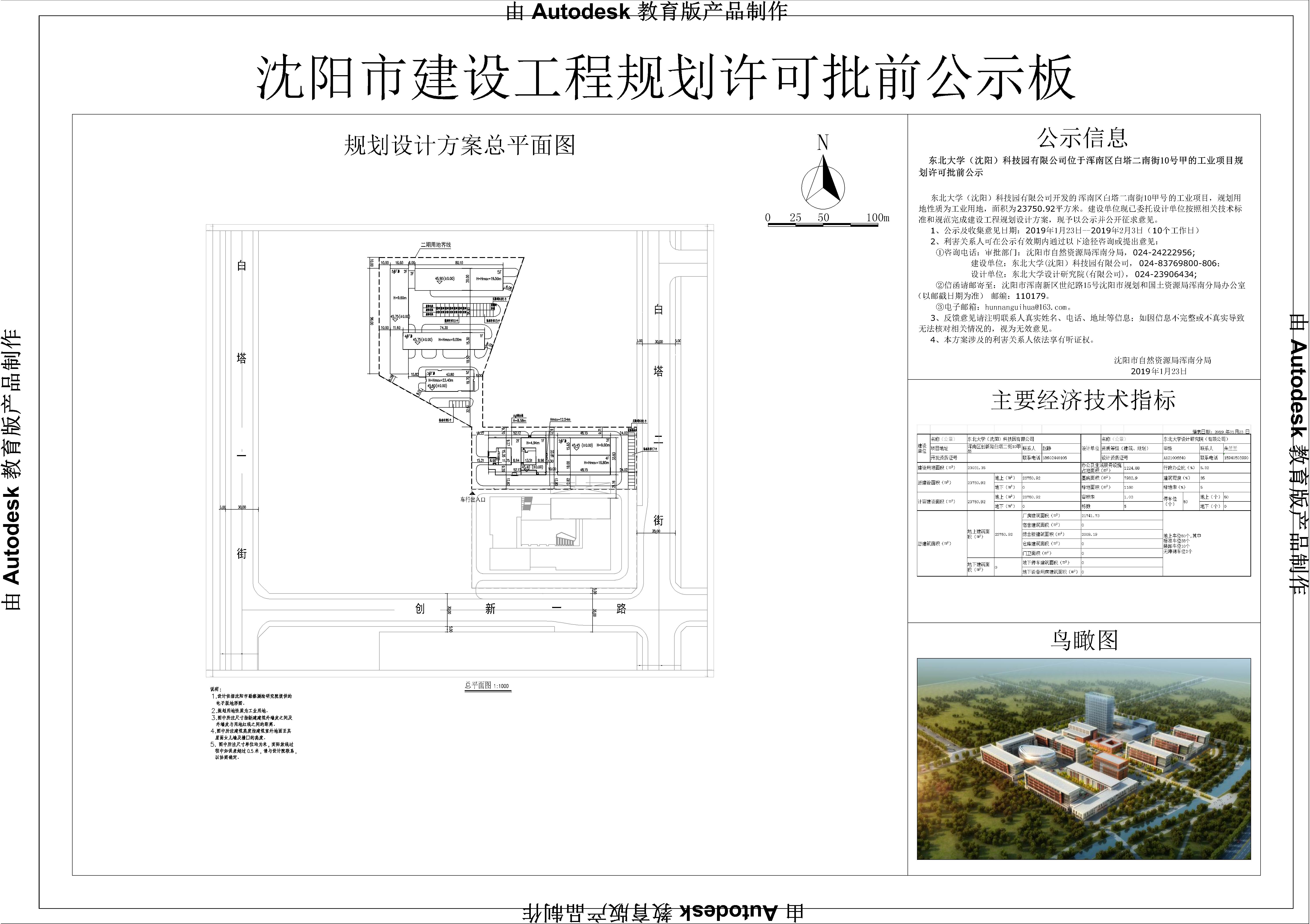 东北大学(沈阳)科技园有限公司位于浑南区白塔二南街10甲号的工业项目规划许可批前公示
