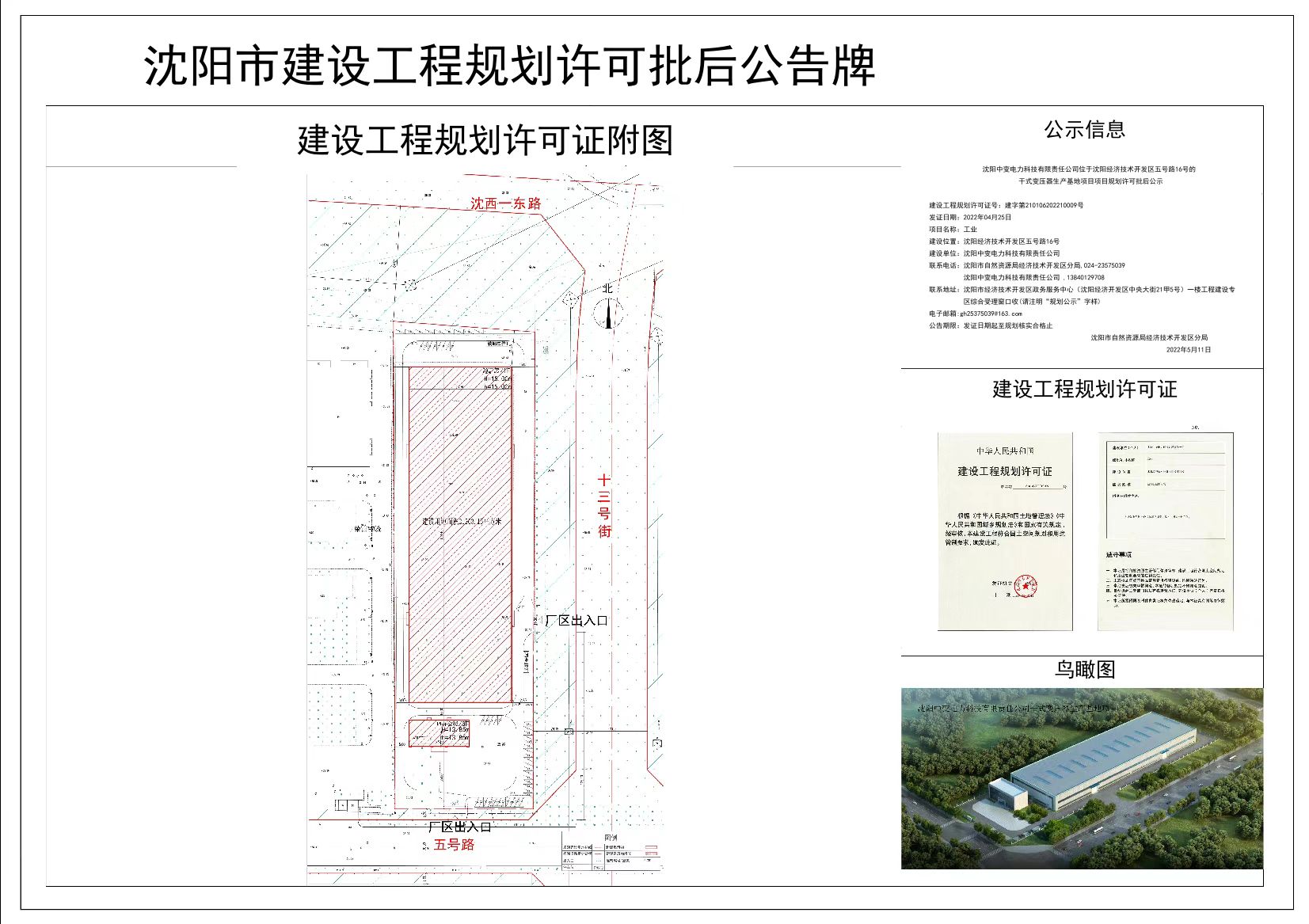 沈阳中变电力科技有限责任公司位于沈阳经济技术开发区五号路16号的干式变压器生产基地项目项目规划许可批后公示