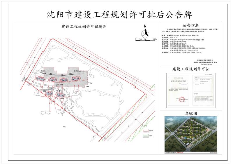 沈阳嘉兴置业有限公司位于浑南区浑南中路50甲号的居住、商业(三期-1)项目《建设工程规划许可证》批后公告