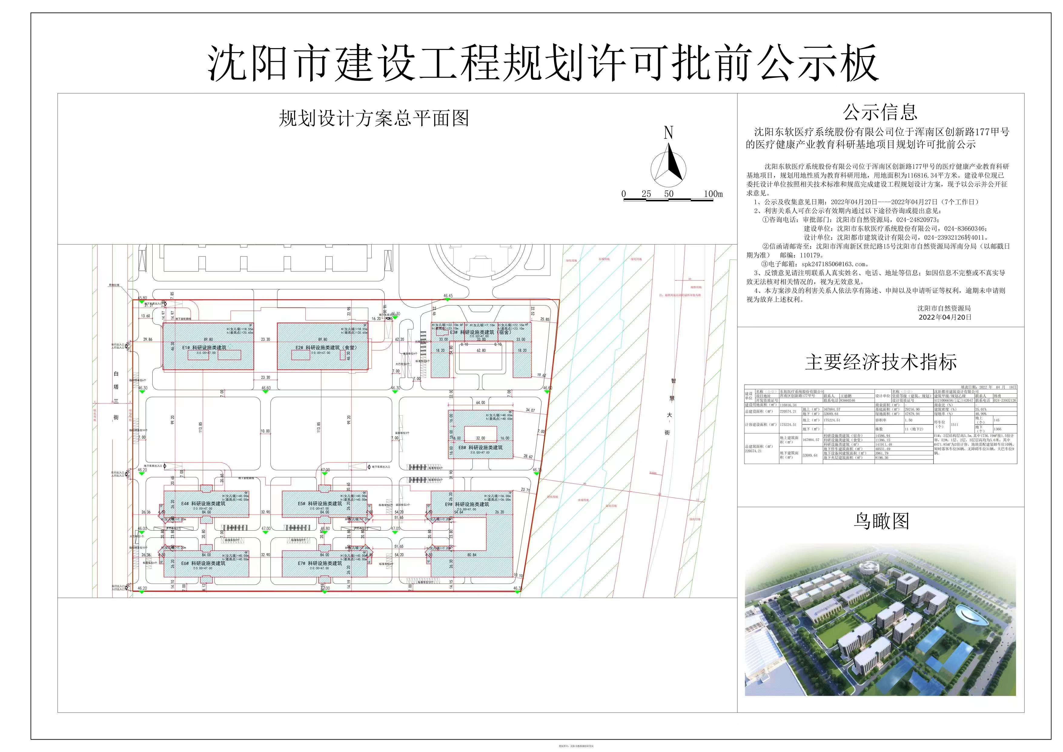 沈阳东软医疗系统股份有限公司位于浑南区创新路177甲号的医疗健康产业教育科研基地项目规划许可批前公示