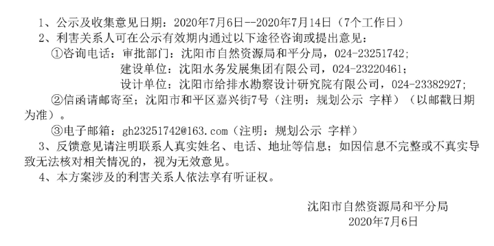 沈阳水务发展集团有限公司位于和平区的胜利大街管网配套工程项目《建设工程规划许可证(市政)》批前公示