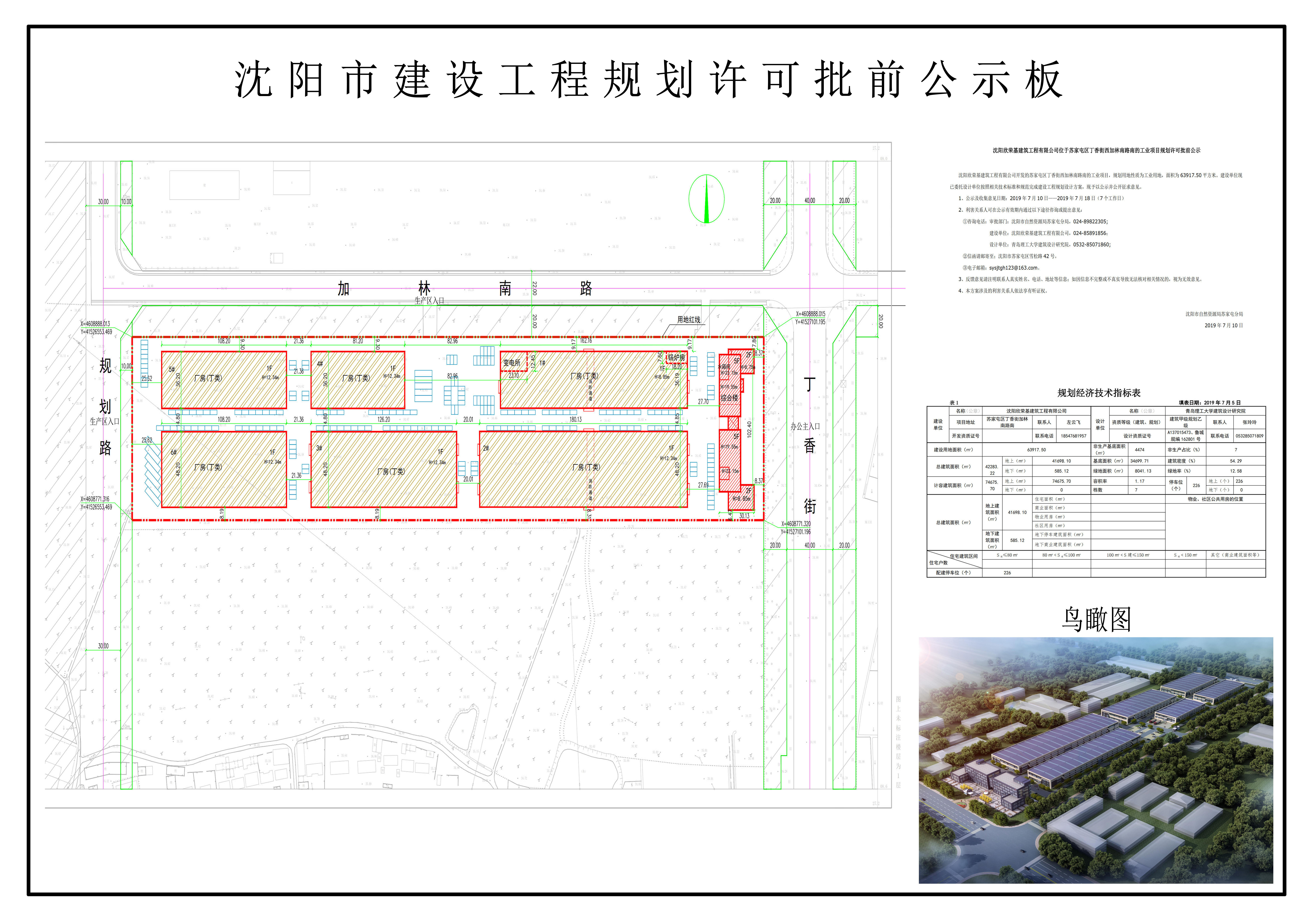 沈阳欣荣基建筑工程有限公司工业项目规划许可批前公示