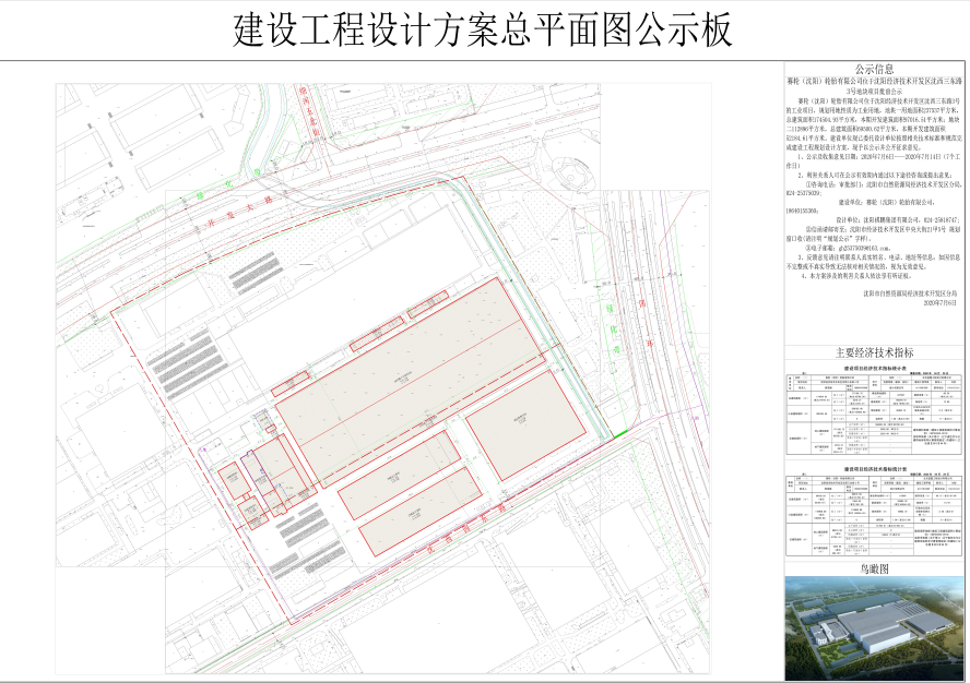 赛轮(沈阳)轮胎有限公司位于沈阳经济技术开发区沈西三东路3号地块项目批前公示 赛轮(沈阳)轮胎有限公司位于沈阳经济技术开发区沈西三东路3号的工业项目,规划用地性质为工业用地,地块一用地面积237537平方米,总建筑面积174504.93平方米,本期开发建筑面积97016.51平方米;地块二112896平方米,总建筑面积69500.62平方米,本期开发建筑面积52184.61平方米。建设单位现已委托设计单位按照相关技术标准和规范完成建设工程规划设计方案,现予以公示并公开征求意见。 1、公示及收集意见日期:2020年7月6日----2020年7月14日(7个工作日) 2、利害关系人可在公示有效期内通过以下途径咨询或提出意见: ①咨询电话:审批部门:沈阳市自然资源局经济技术开发区分局,024-25375039; 建设单位:赛轮(沈阳)轮胎有限公司,18640155360; 设计单位:沈阳祺鹏集团有限公司,024-25818747; ②信函请邮寄至;沈阳市经济技术开发区中央大街21甲5号 规划窗口收(请注明“规划公示”字样)。 ③电子邮箱:gh25375039@163.com。 3、反馈意见请注明联系人真实姓名、电话、地址等信息;如因信息不完整或不真实导致无法核对相关情况的,视为无效意见。 4、本方案涉及的利害关系人依法享有听证权。 沈阳市自然资源局经济技术开发区分局 2020年7月6日