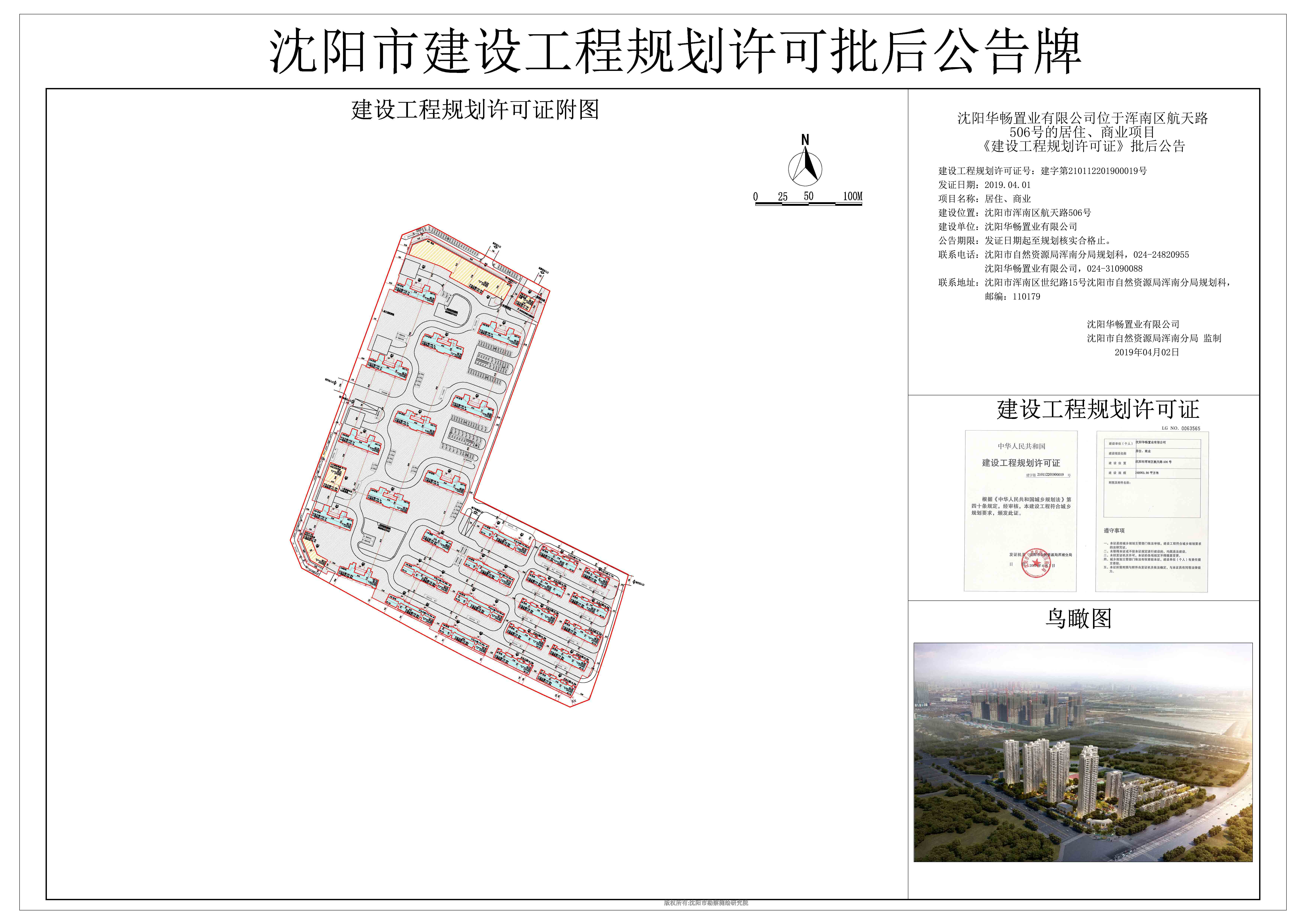 沈阳华畅置业有限公司位于浑南区航天路506号的居住、商业项目《建设工程规划许可证》批后公告