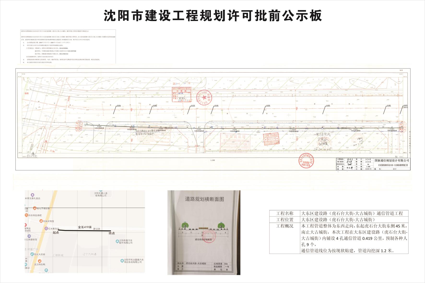 沈阳市自然资源局大东分局关于位于大东区建设路(虎石台大街-大古城街)通信管道工程项目规划许可批前公示