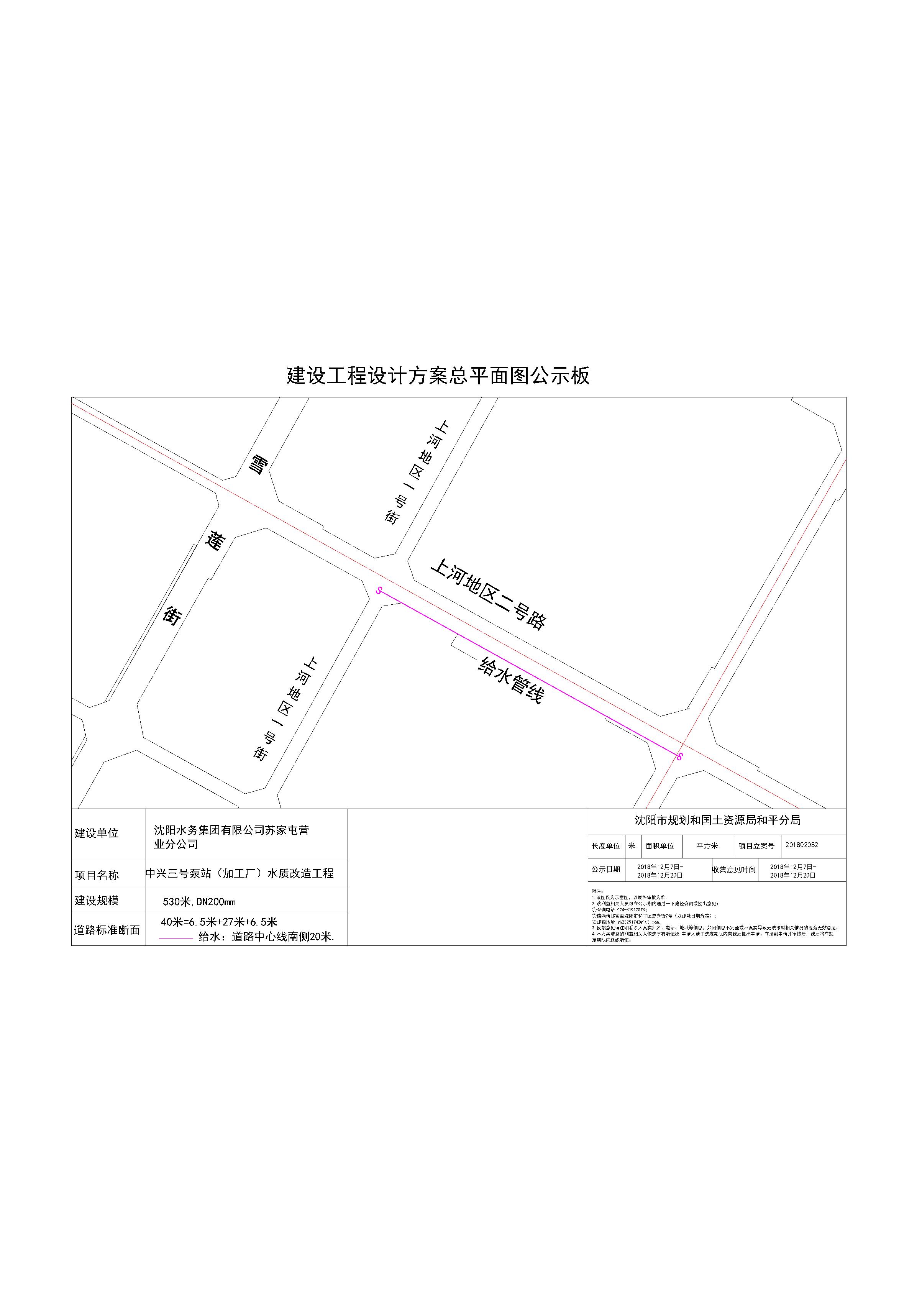 沈阳水务集团有限公司苏家屯营业分公司,中兴三号泵站(加工厂)水质改造工程项目建设工程许可证批前公示
