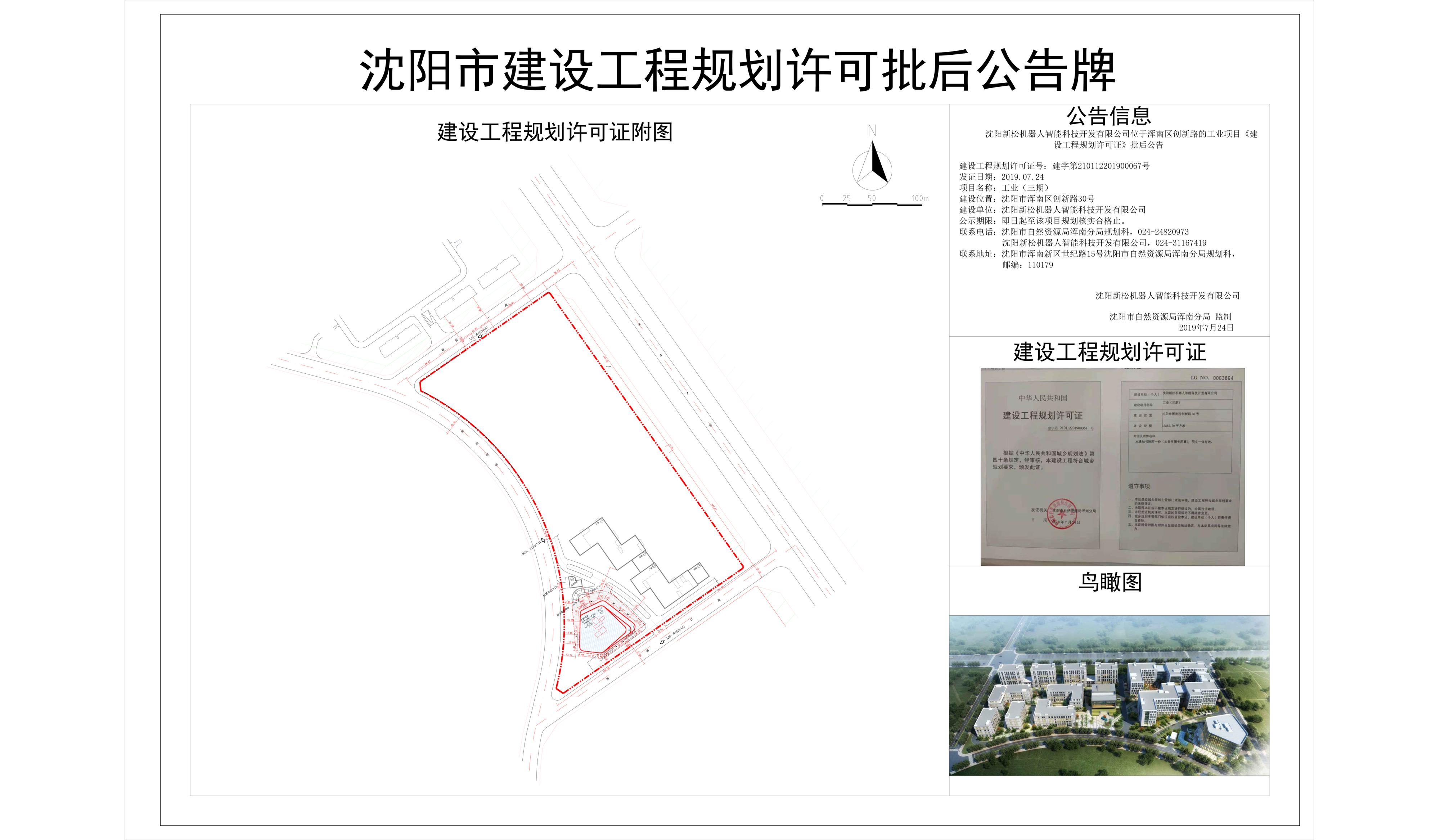 沈阳新松机器人智能科技开发有限公司位于浑南区创新路的工业(三期)项目《建设工程规划许可证》批后公告