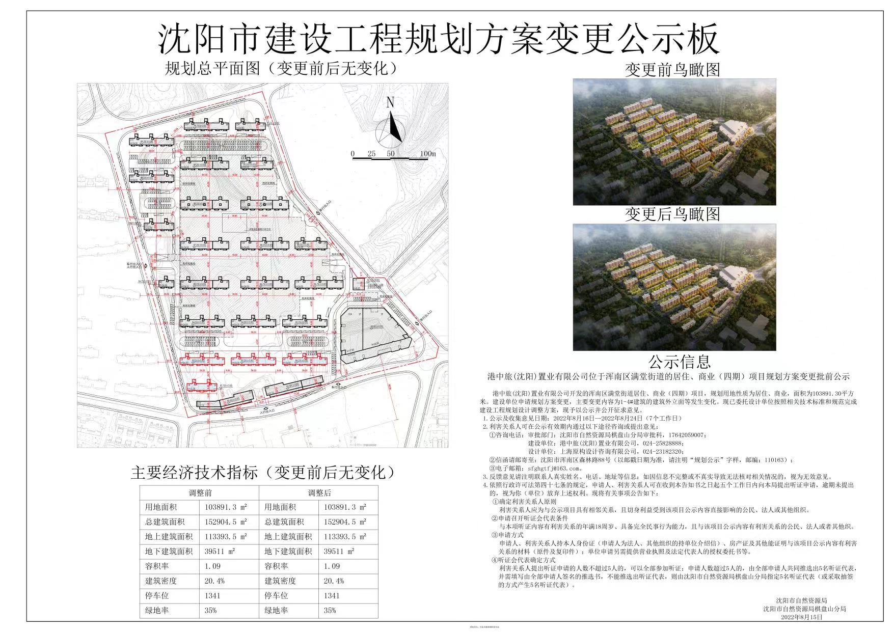 港中旅(沈阳)置业有限公司位于浑南区满堂街道的居住、商业(四期)项目规划方案变更批前公示