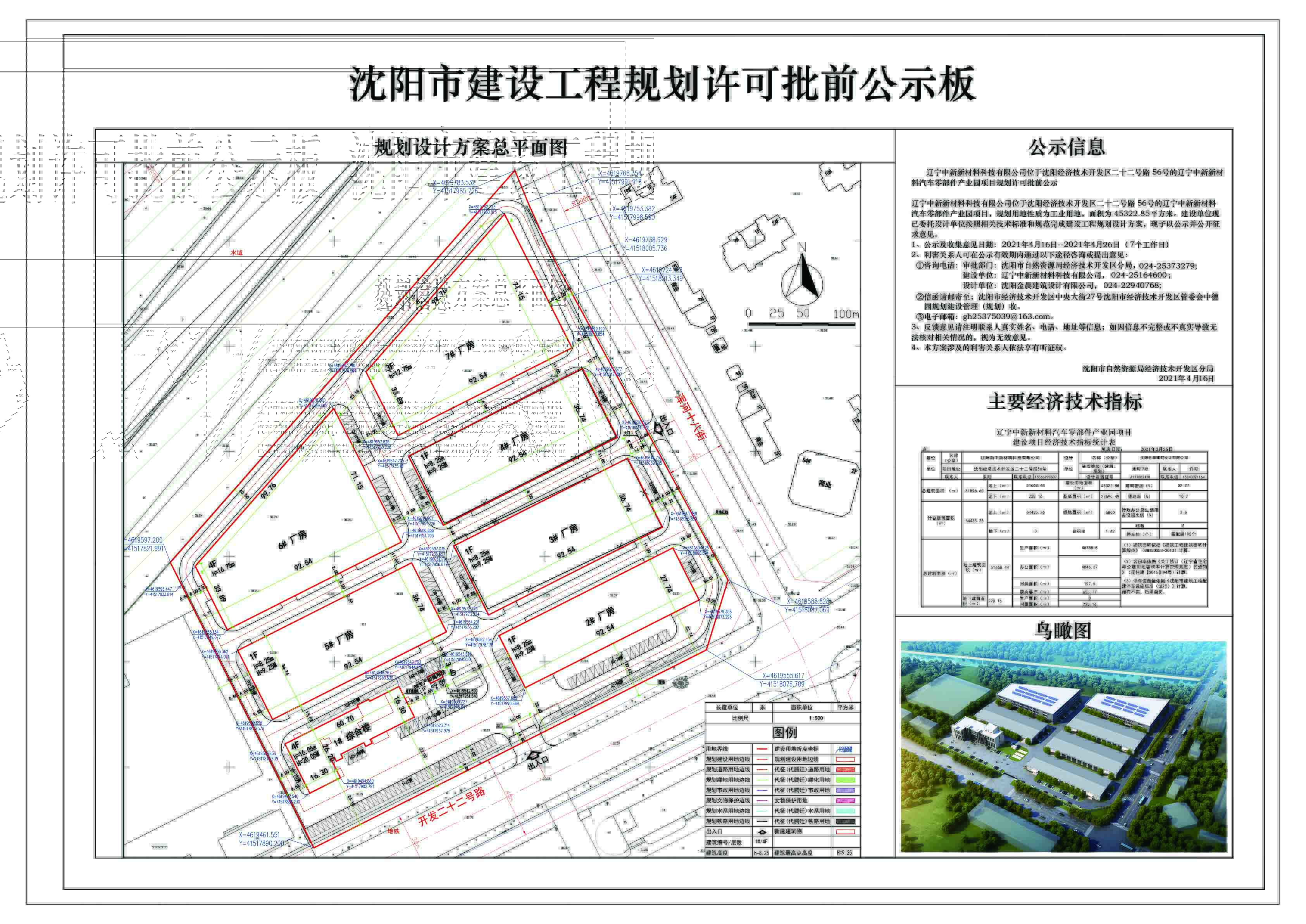 公示信息 辽宁中新新材料科技有限公司位于沈阳经济技术开发区二十二号路56号的辽宁中新新材料汽车零部件产业园项目规划许可批前公示 辽宁中新新材料科技有限公司位于沈阳经济技术开发区二十二号路56号的辽宁中新新材料汽车零部件产业园项目,规划用地性质为工业用地,面积为45322.85平方米。建设单位现已委托设计单位按照相关技术标准和规范完成建设工程规划设计方案,现予以公示并公开征求意见。 1、公示及收集意见日期:2021年4月16日- -2021年4月26日(7个工作日) 2、利害关系人可在公示有效期内通过以下途径咨询或提出意见: ①咨询电话:审批部门:沈阳市自然资源局经济技术开发区分局,024-25373279; 建设单位:辽宁中新新材料科技有限公司,024-25164600; 设计单位:沈阳金晨建筑设计有限公司,024-22940768; ②信函请邮寄至;沈阳市经济技术开发区中央大街27号沈阳市经济技术开发区管委会中德园规划建设管理(规划)收。 ③电子邮箱:gh25375039@163.com。 3、反馈意见请注明联系人真实姓名、电话、地址等信息;如因信息不完整或不真实导致无法核对相关情况的,视为无效意见。 4、本方案涉及的利害关系人依法享有听证权。