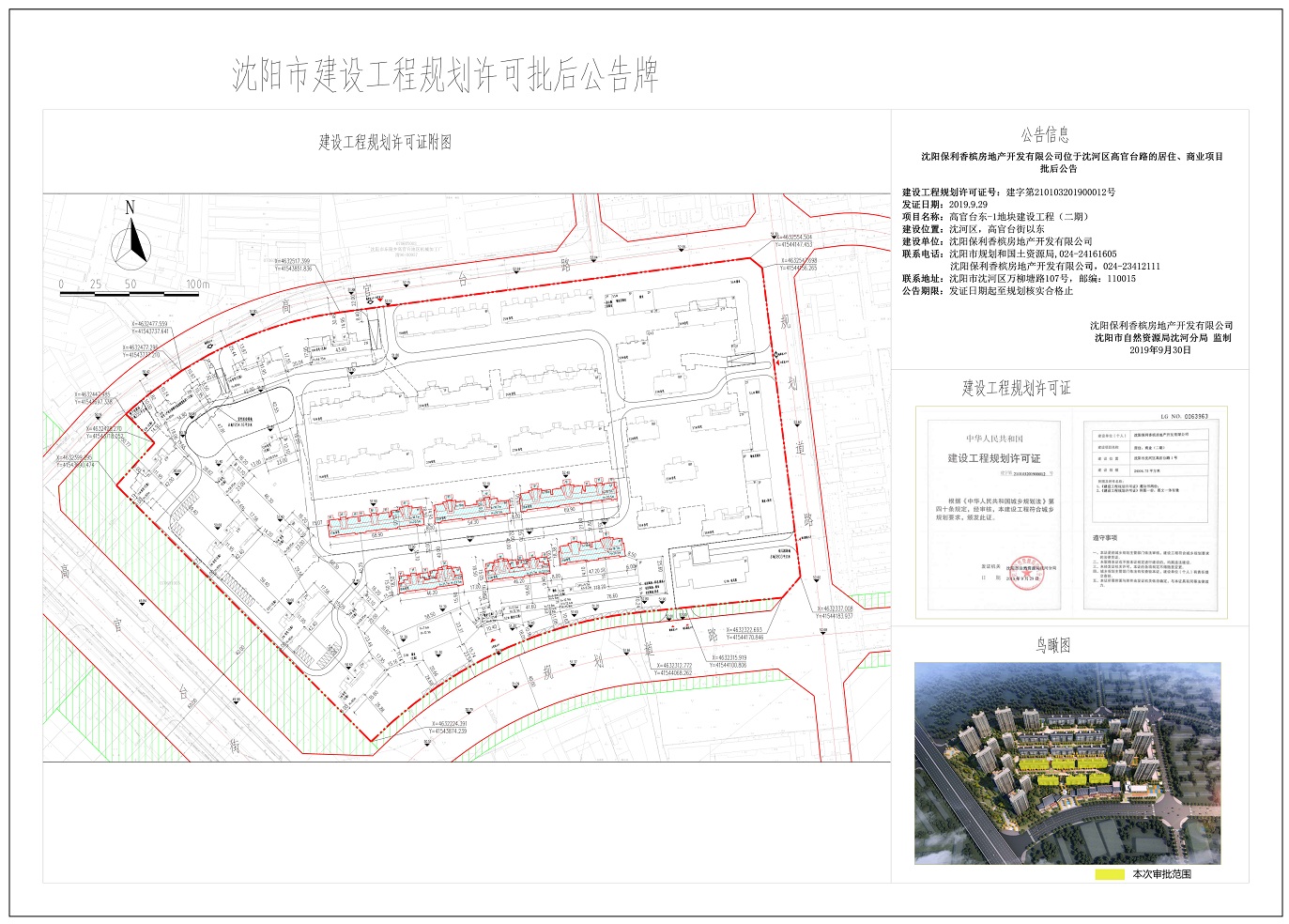 沈阳保利香槟房地产开发有限公司位于沈河区高官台路的居住、商业项目 《建设工程规划许可证》(二期) 批后公告