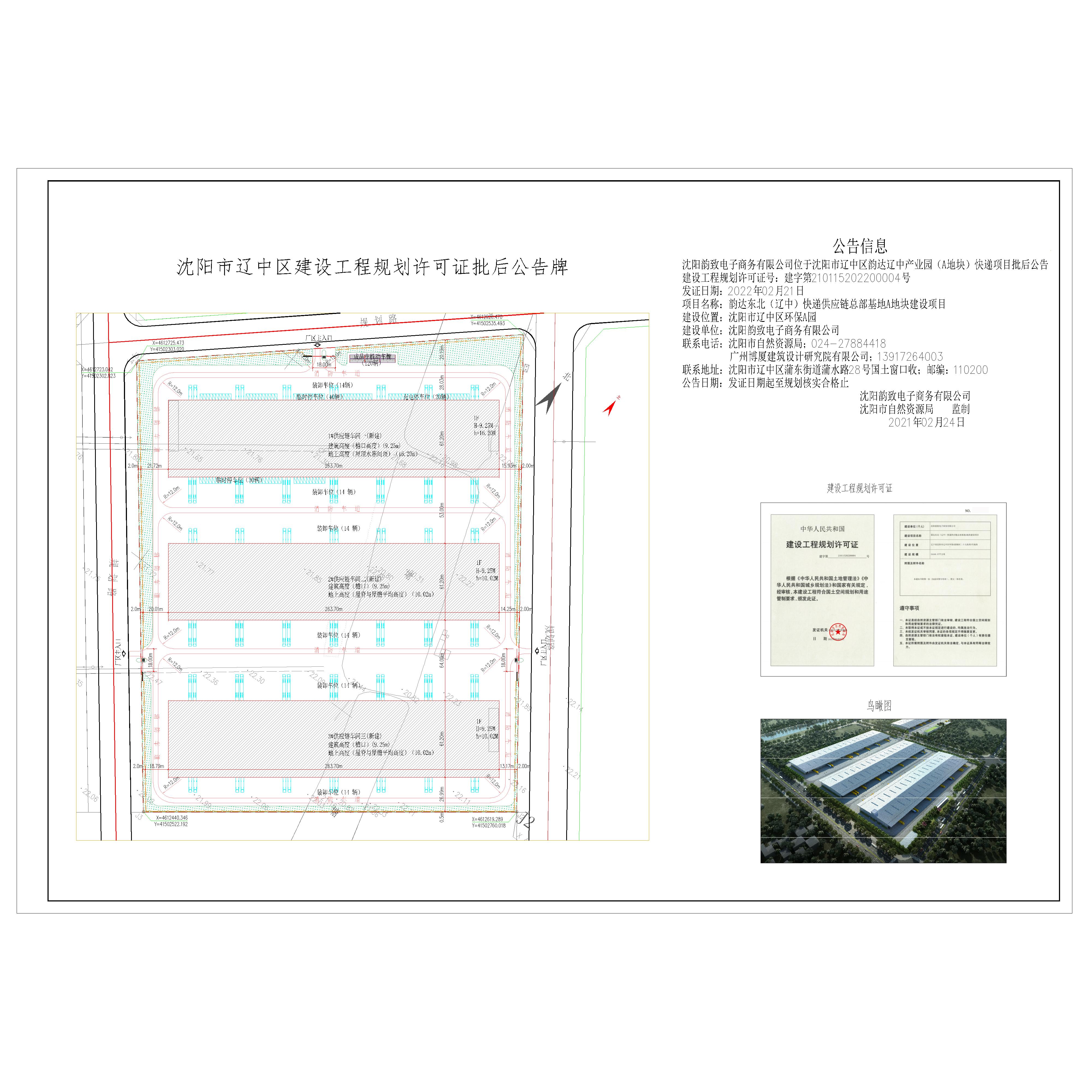 沈阳韵致电子商务有限公司位于沈阳市辽中区韵达辽中产业园(A地块)快递项目批后公告