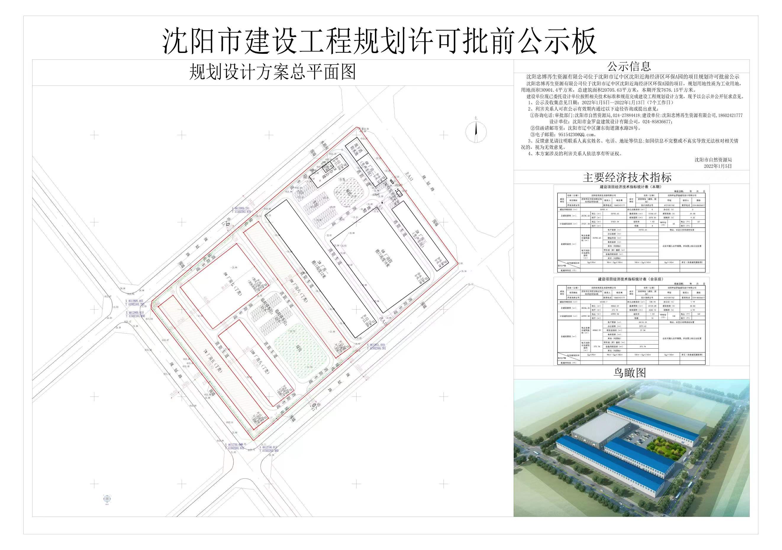 沈阳忠博再生资源有限公司位于沈阳市辽中区沈阳近海经济区环保A园的项目,规划用地性质为工业用地,用地面积30901.4平方米,总建筑面积20705.63平方米,本期开发7676.15平方米。 建设单位现已委托设计单位按照相关技术标准和规范完成建设工程规划设计方案,现予以公示并公开征求意见。