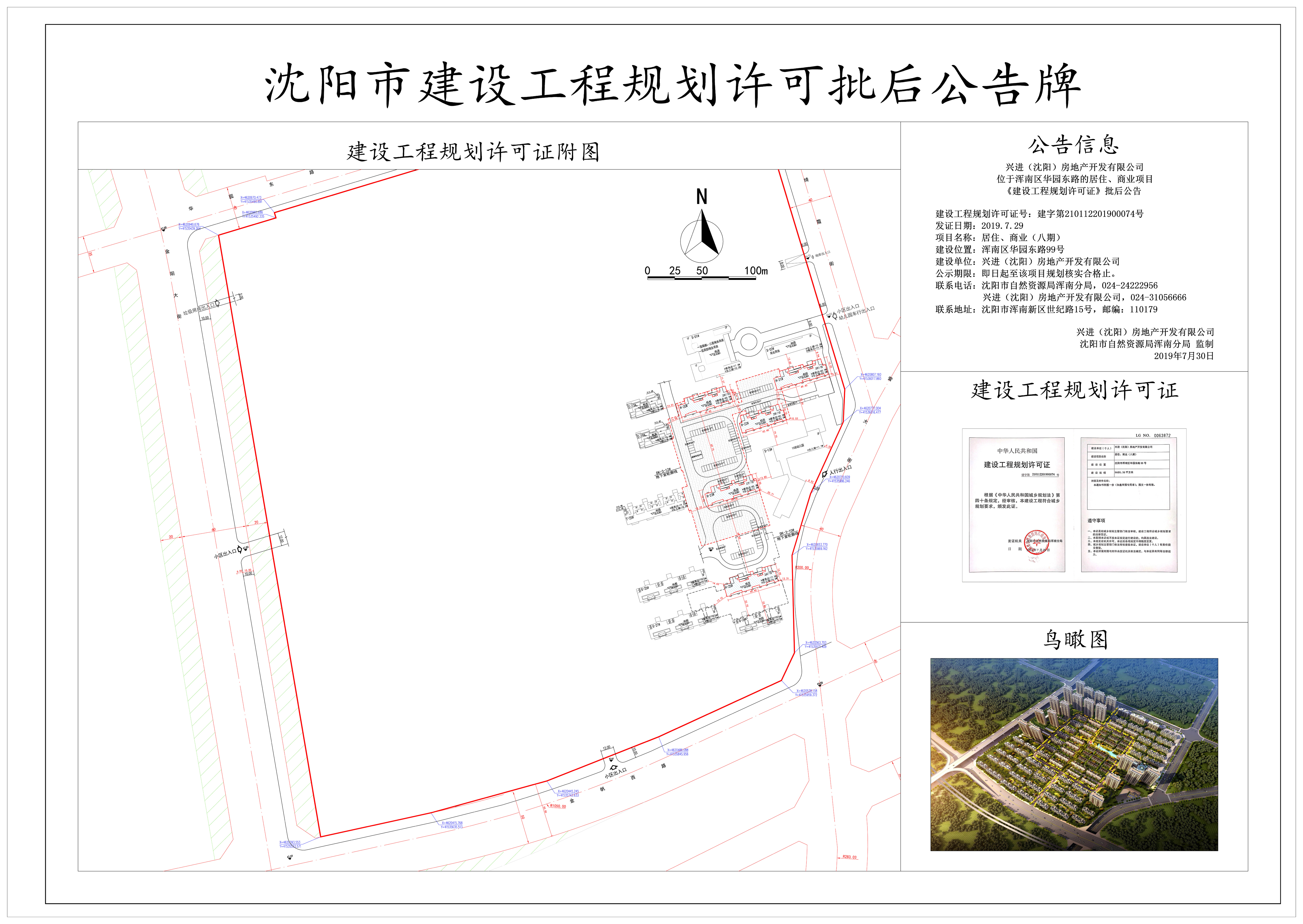 兴进(沈阳)房地产开发有限公司位于浑南区华园东路的居住、商业(八期)项目《建设工程规划许可证》批后公告