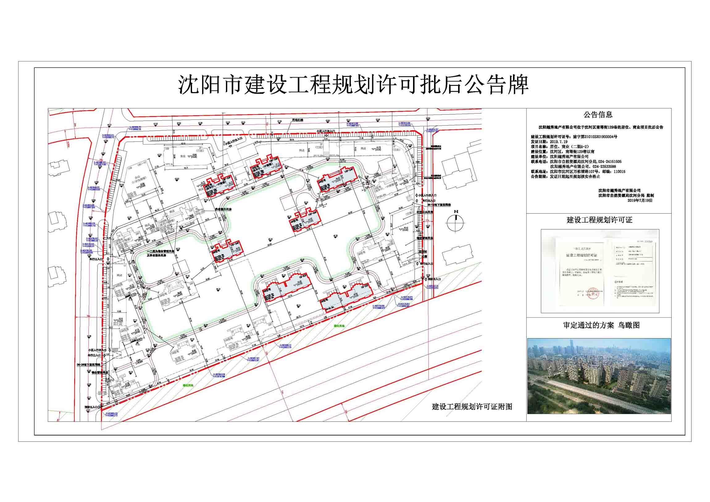 沈阳越秀地产有限公司位于沈河区南塔街129巷的居住、商业项目《建设工程规划许可证》批后公告