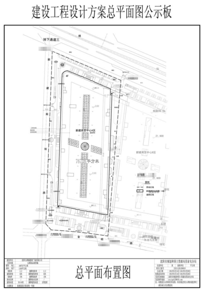 沈阳五洲城建材广场有限公司的五洲商品展贸城建设项目总平面规划方案批前公示