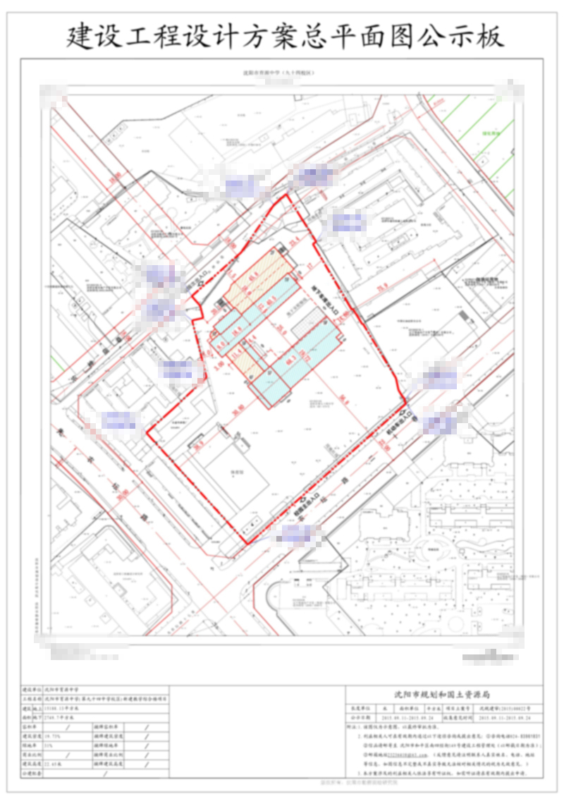 [总平面规划方案] 沈阳市育源中学 位于 沈河区先农坛路18号的 新建教学综合楼 批前公示