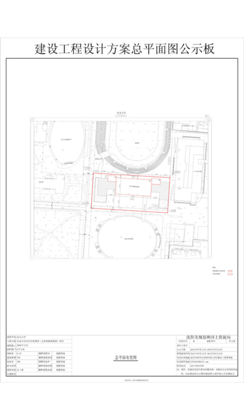 [总平面规划方案]东北大学位于 沈阳市和平区文化路11号的刘长春体育馆(艺术体操训练馆)规划方案批前公示