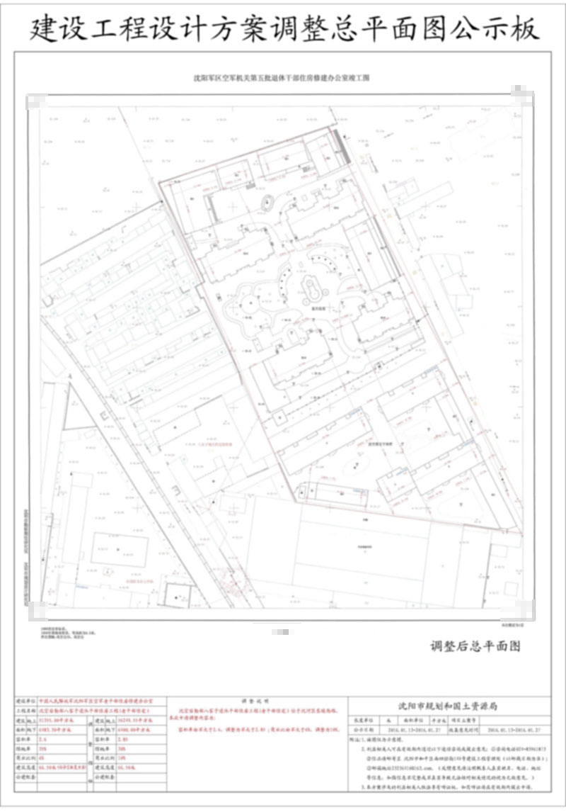 中国人民解放军沈阳军区空军老干部住房建设办公室位于沈河区东陵西路的老干部住宅项目容积率调整公示
