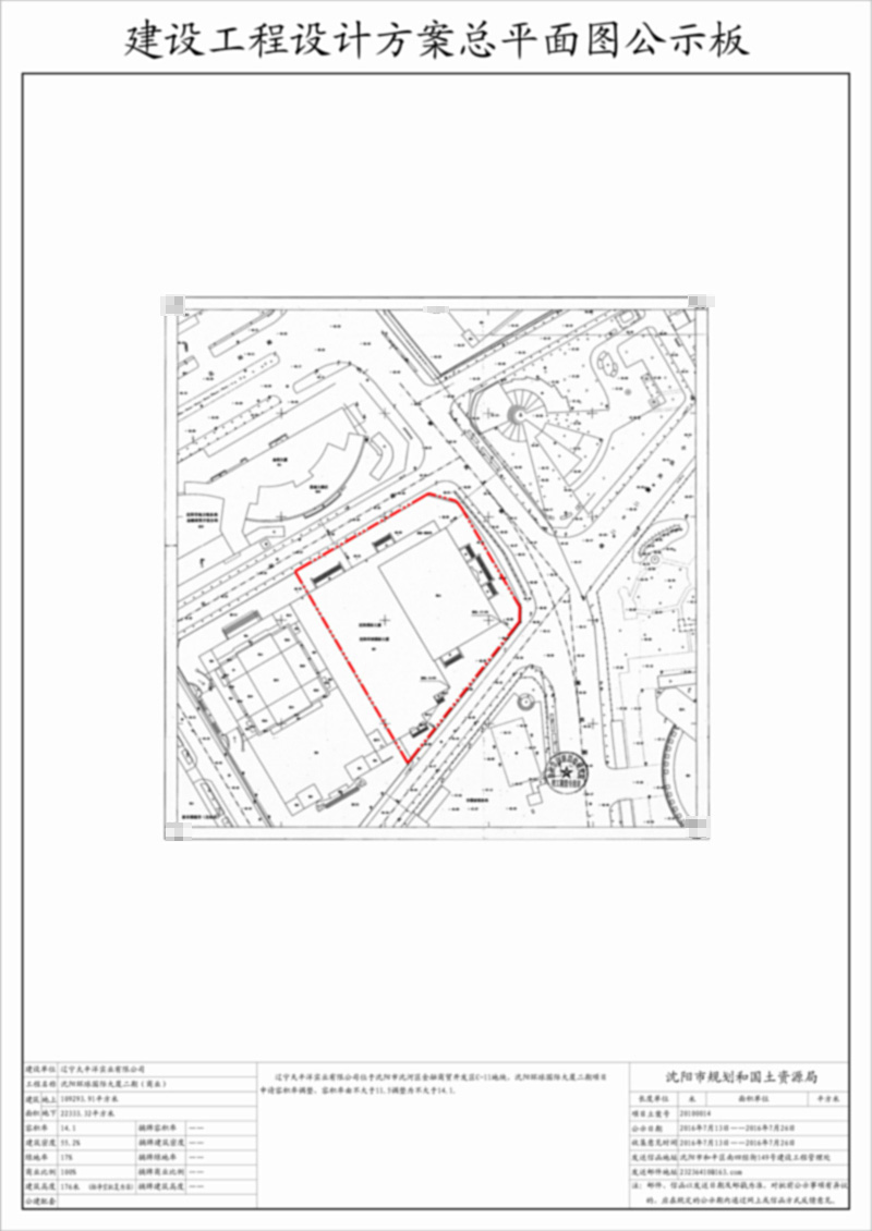 [总平面规划方案]辽宁太平洋实业有限公司位于沈阳市沈河区金融商贸开发区C-11地块的沈阳环球国际大厦二期项目指标调整公示