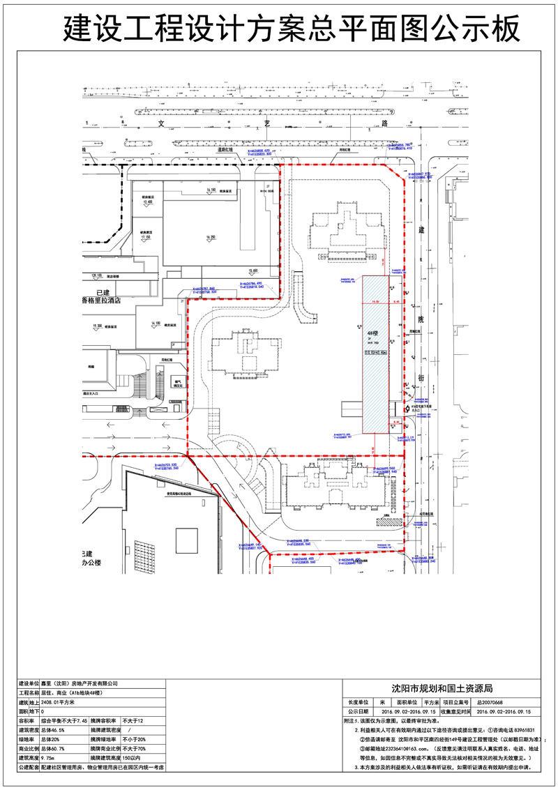 [总平面规划方案]嘉里(沈阳)房地产开发有限公司位于沈河区青年大街东侧的居住、商业(A1b地块4#楼)批前公示