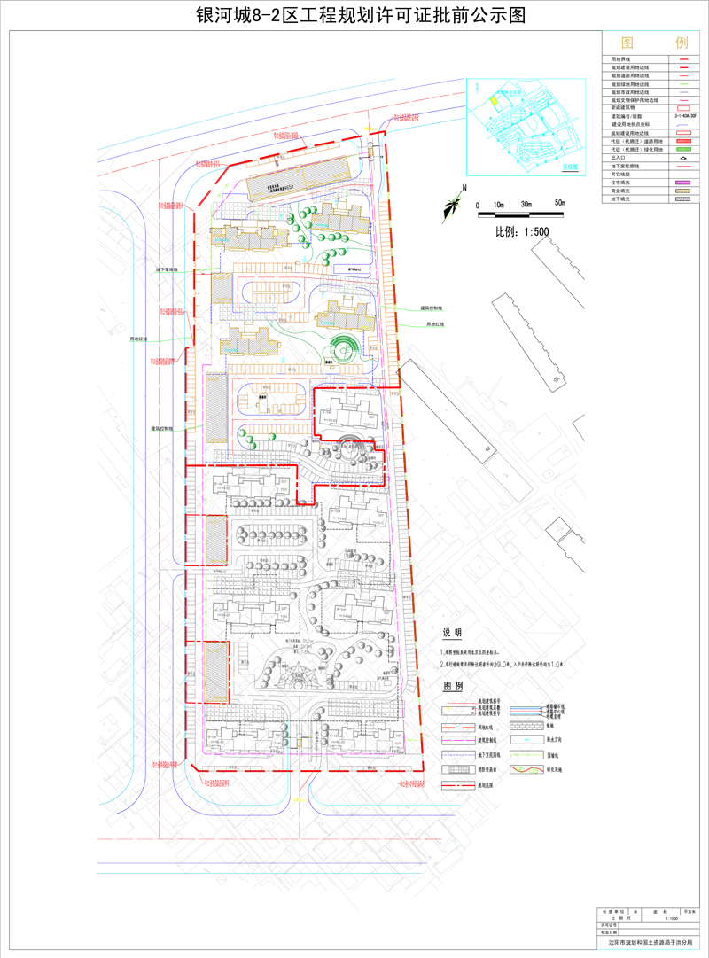 经沈阳市规划和国土资源局于洪分局建审科审核,拟批准沈阳华锐置业有限公司位于沈阳市于洪区城东湖街道于洪新城44#地块(银河城8-2区)建设工程规划许可证,现对该项目总平面规划方案进行公示