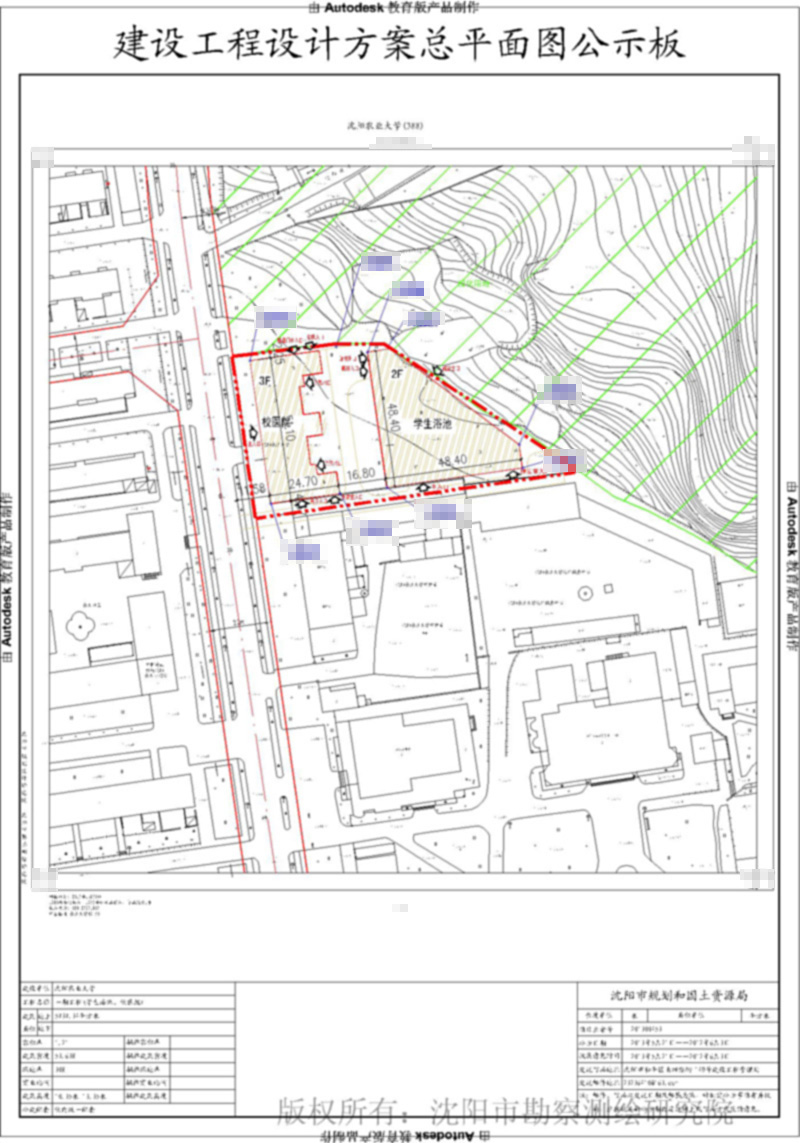 经沈阳市规划和国土资源局建设工程管理处审核,拟批准沈阳农业大学一期工程(校医院、学生浴池)总平面规划方案,现对该项目总平面规划方案进行公示。