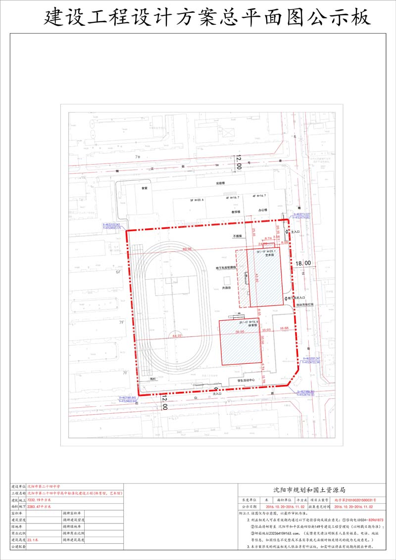 [总平面规划方案]沈阳市第二十四中学位于皇姑区巴山路56号的高中标准化建设工程(体育馆,艺术馆)项目批前公示