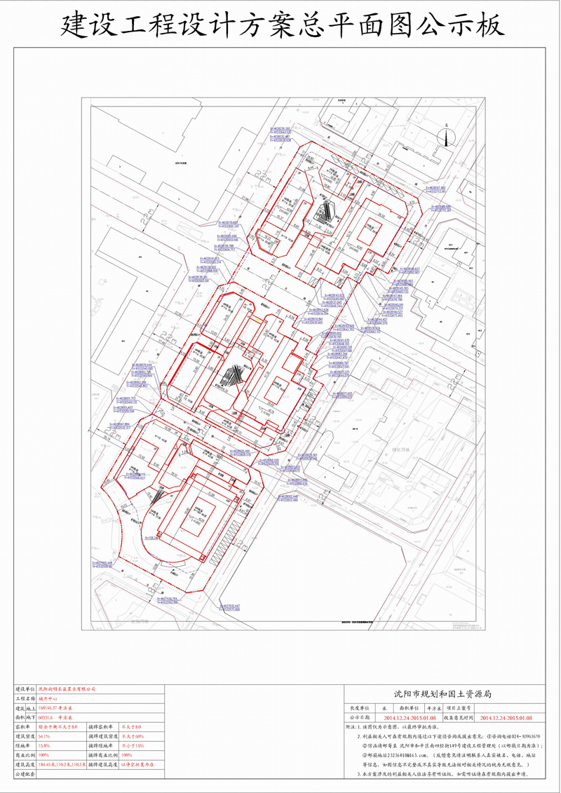 经沈阳市规划和国土资源局建设工程管理处审核,拟批准沈阳向明长益置业有限公司位于沈阳市和平区天津南街西侧的商业项目规划方案,现对该项目总平面进行公示并征求意见。