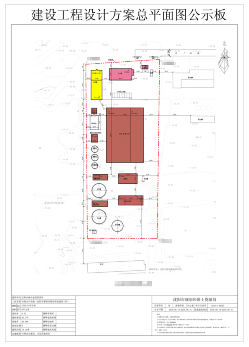 沈阳市城市建设管理局的市政公共设施(沈阳市餐厨垃圾处理场建设工程)建设项目总平面规划方案批前公示
