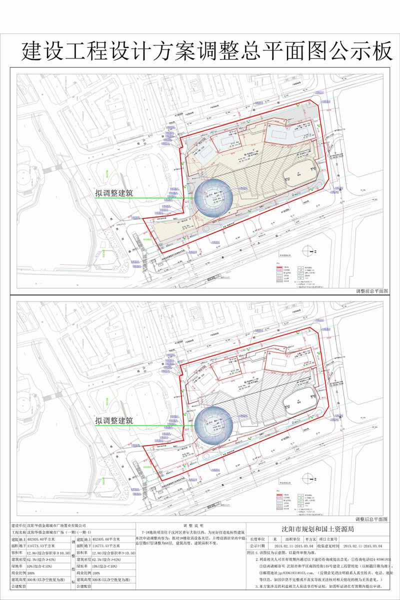 沈阳华强金廊城市广场置业有限公司位于沈河区青年大街西侧规划设计调整方案批前公示