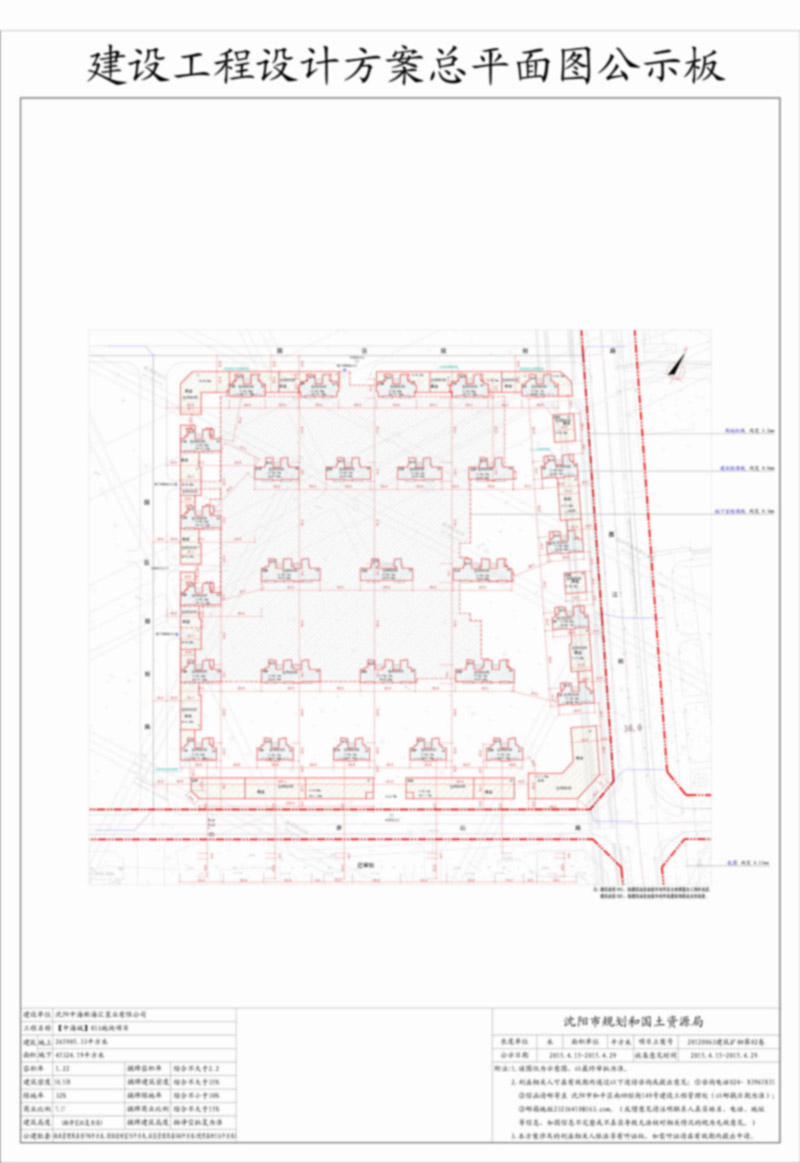 经沈阳市规划和国土资源局建设工程管理处审核,拟批准沈阳中海新海汇置业有限公司位于于洪区西江街西侧01A地块规划设计方案,现对该项目总平面方案进行公示并征求意见。
