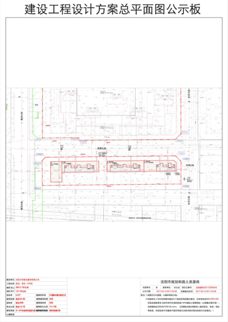 沈阳万科紫台置地有限公司位于皇姑区黄河北大街的居住、商业(4#地)规划设计方案批前公示