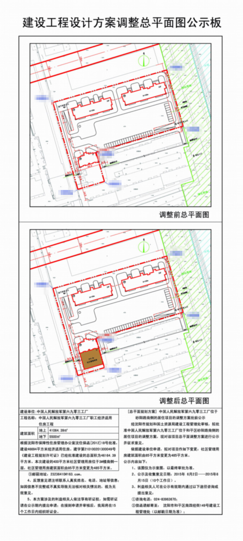 经沈阳市规划和国土资源局建设工程管理处审核,拟批准中国人民解放军第六九零三工厂位于和平区砂阳路南侧的居住项目的调整方案,现对该项目总平面调整方案进行公示并征求意见。