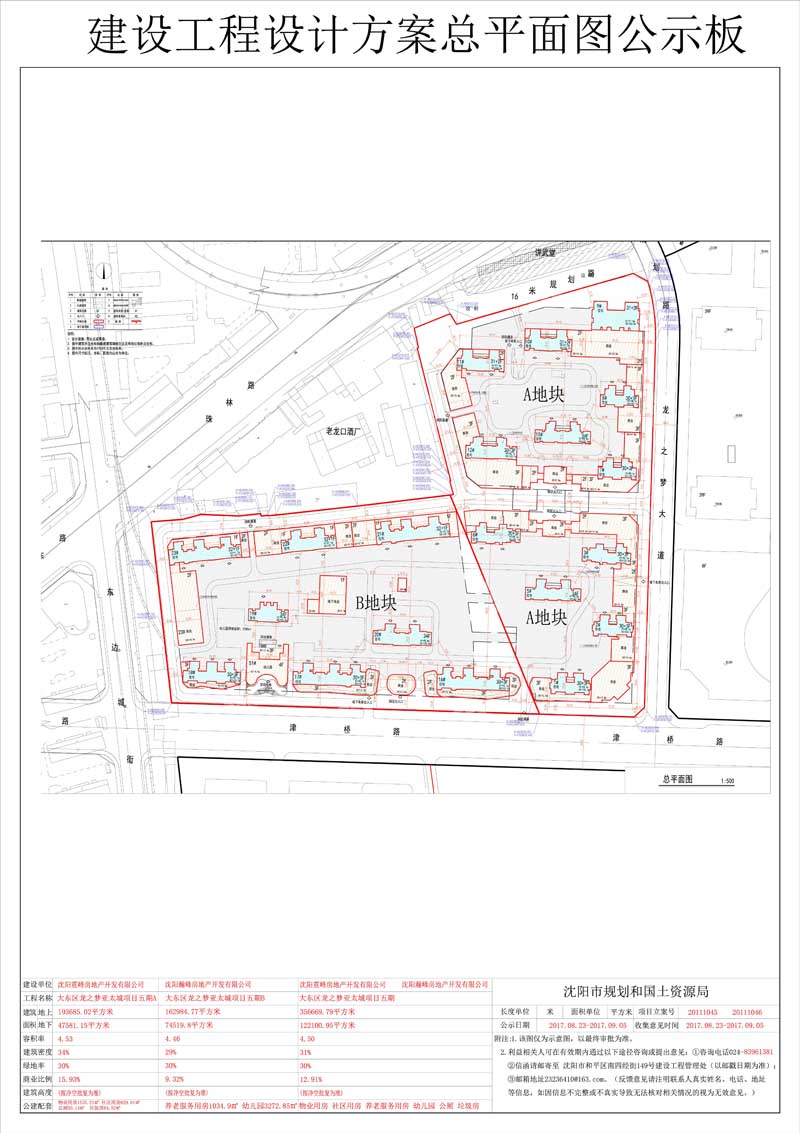 [总平面规划方案]沈阳霓峰房地产开发有限公司、沈阳瀚峰房地产开发有限公司位于大东区津桥路的居住、商业批前公示