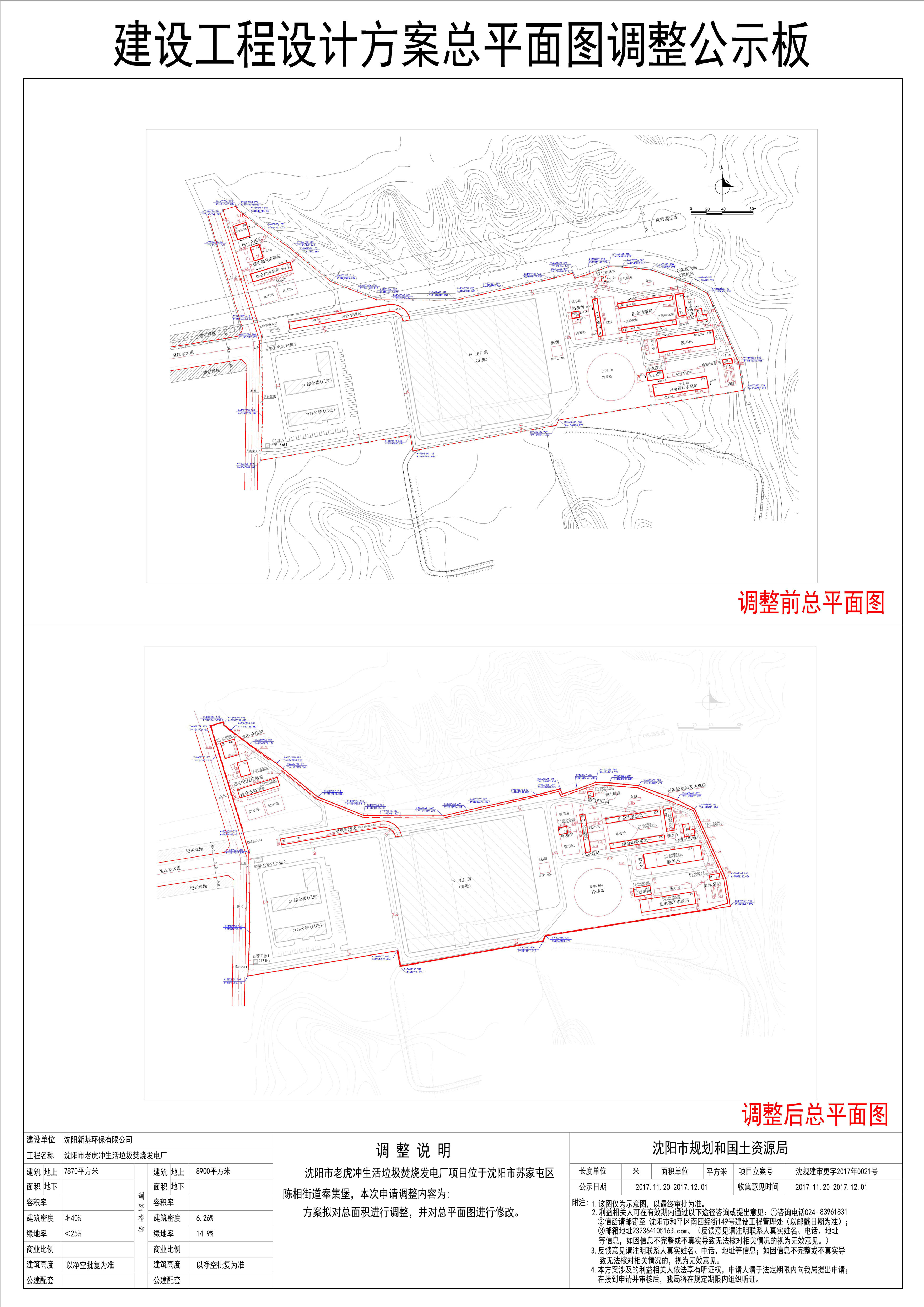 [总平面规划方案]沈阳新基环保有限公司位于苏家屯区陈相街道的沈阳市老虎冲生活垃圾焚烧发电厂项目调整方案 批前公示
