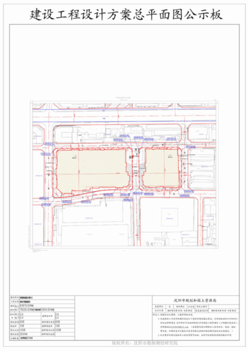 经沈阳市规划和国土资源局建设工程管理处审核,拟批准沈阳豫园商城置业有限公司位于沈河区北中街的商业项目建设工程规划设计方案,现对该项目总平面方案进行公示并征求意见。