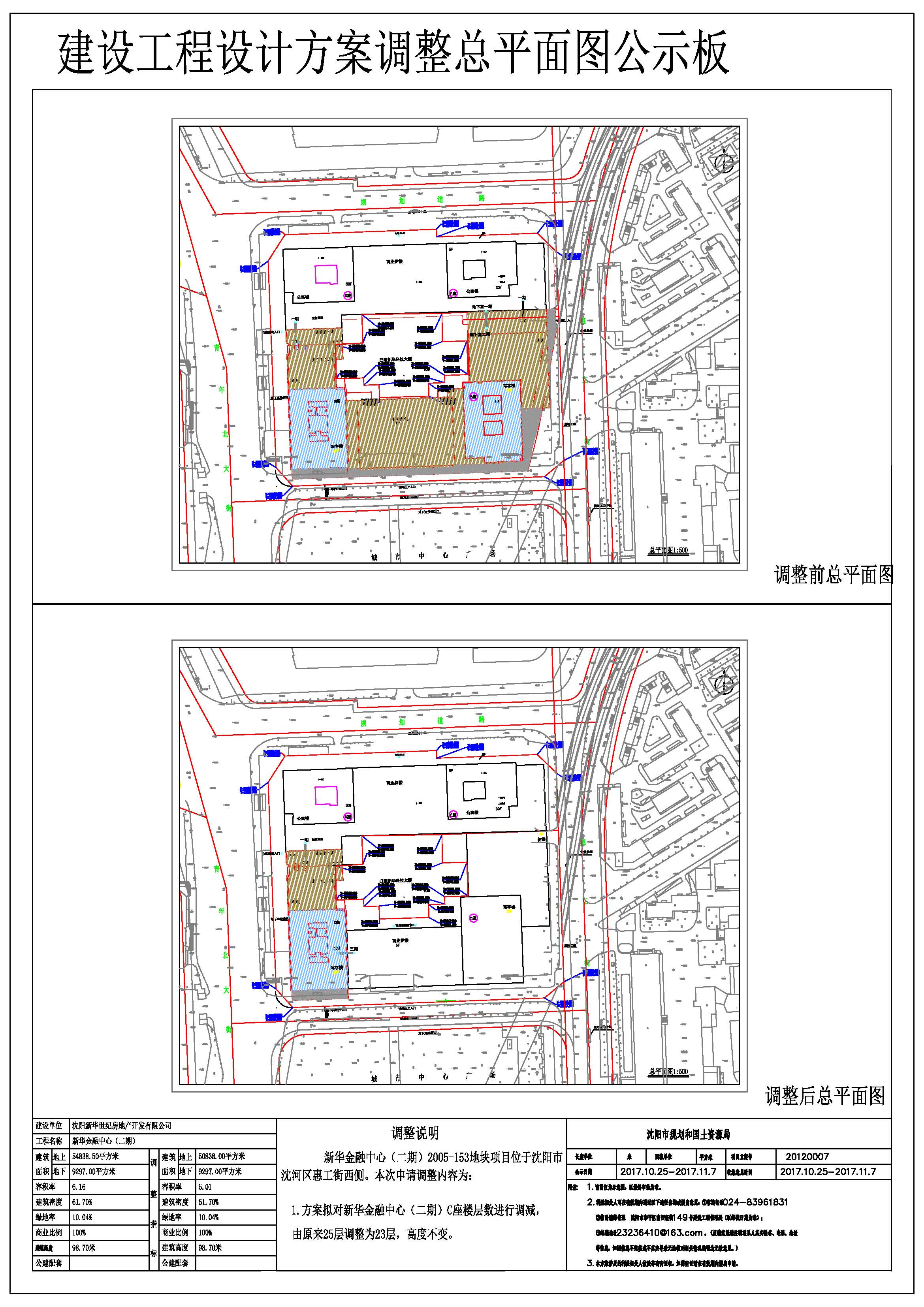 沈阳新华世纪房地产开发有限公司 新华金融中心(二期)项目 总平面规划方案调整 批前公示