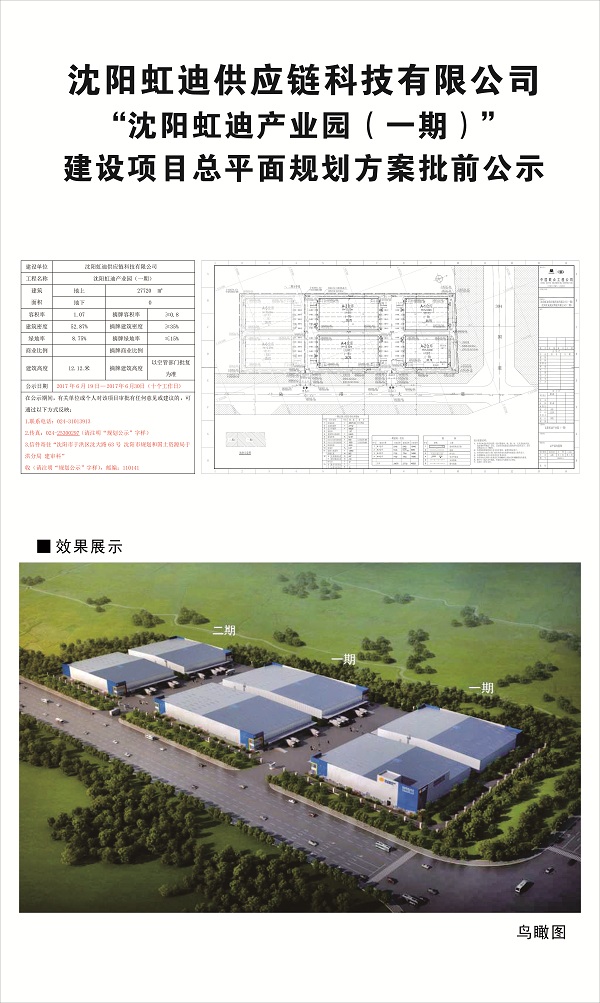 沈阳虹迪供应链科技有限公司“沈阳虹迪产业园(一期)”建设项目总平面规划方案批前公示