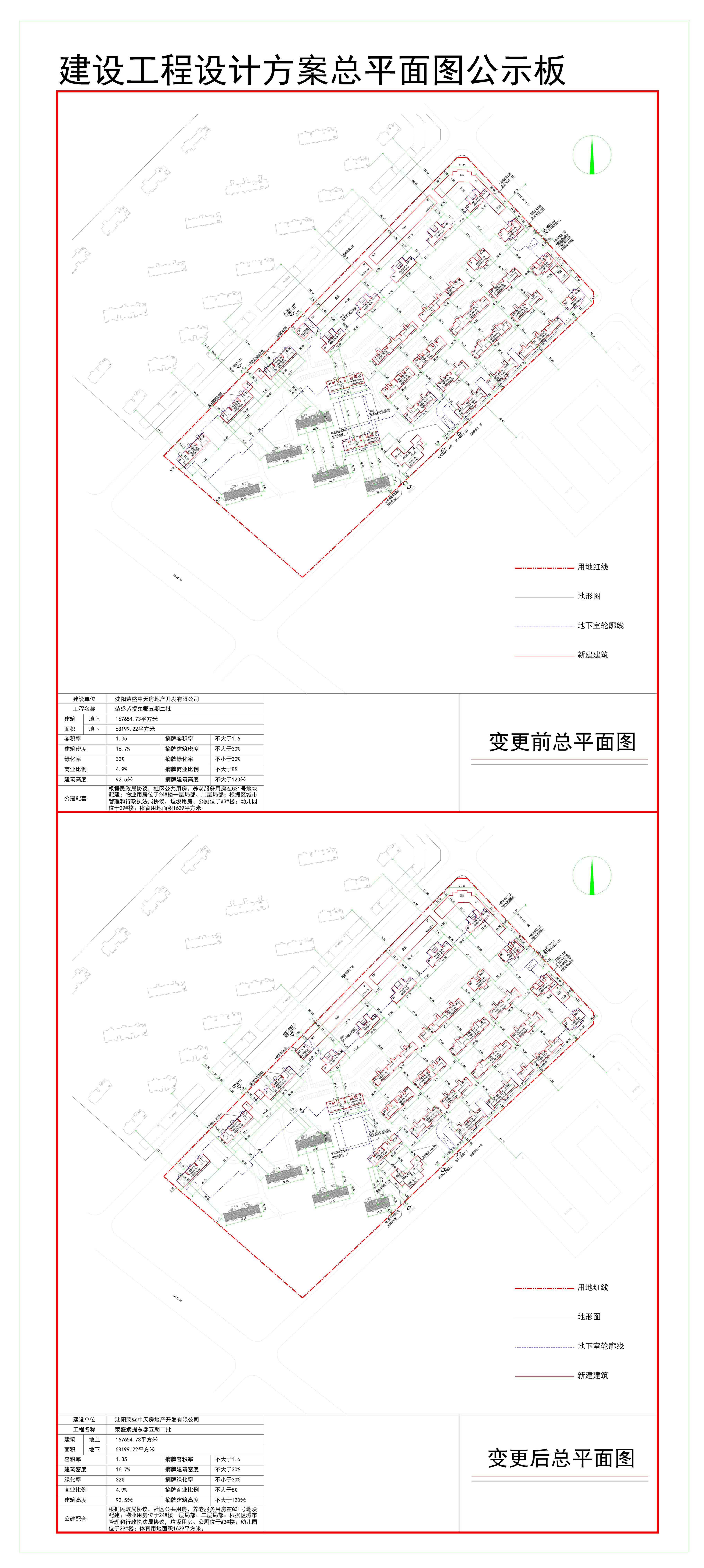 建设单位 沈阳荣盛中天房地产开发有限公司 工程名称 居住、商业(二期) 建筑 面积 地上 167654.73平方米 地下 68199.22平方米 容积率 1.35 摘牌容积率 不大于1.6 建筑密度 16.7% 摘牌建筑密度 不大于30% 绿地率 32% 摘牌绿地率 不小于30% 商业比例 4.9% 摘牌商业比例 不大于8% 建筑高度 92.5米 摘牌建筑高度 不大于120米 公共配套(含物业) 社区公共用房、养老服务设施用房在G31号地块配建,物业用房位于24#楼一层局部、二层局部,垃圾用房、公厕位于W3#楼,幼儿园位于29#楼,体育用地面积1629平方米 | |||||||||||||||||||||||||||||||||||||||||||||