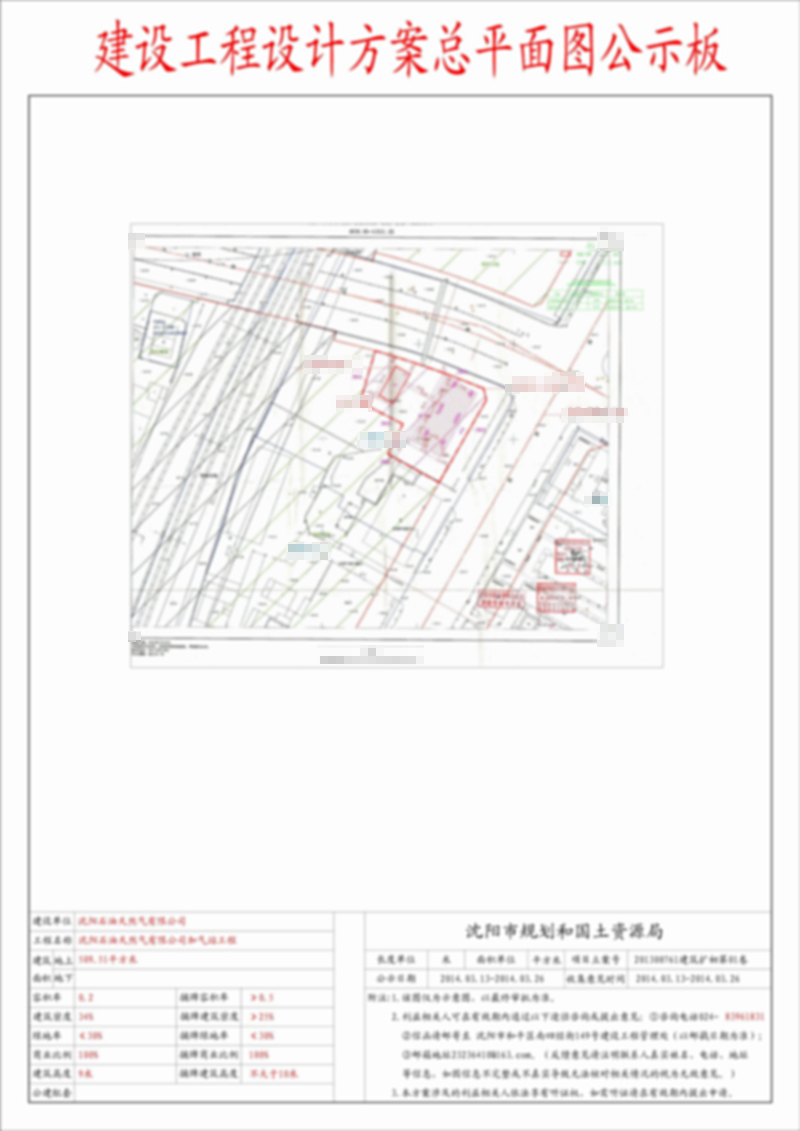 经沈阳市规划和国土资源局建设工程管理处审核,拟批准沈阳石油天然气有限公司位于和平区胜利大街南八马路南的加气站规划方案,现对该项目总平面规划方案进行公示并征求意见。