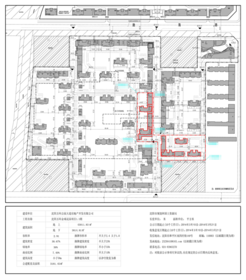 [总平面规划方案]沈阳万科公园大道房地产开发有限公司位于 于洪区渤海路 的住宅、商业批前公示