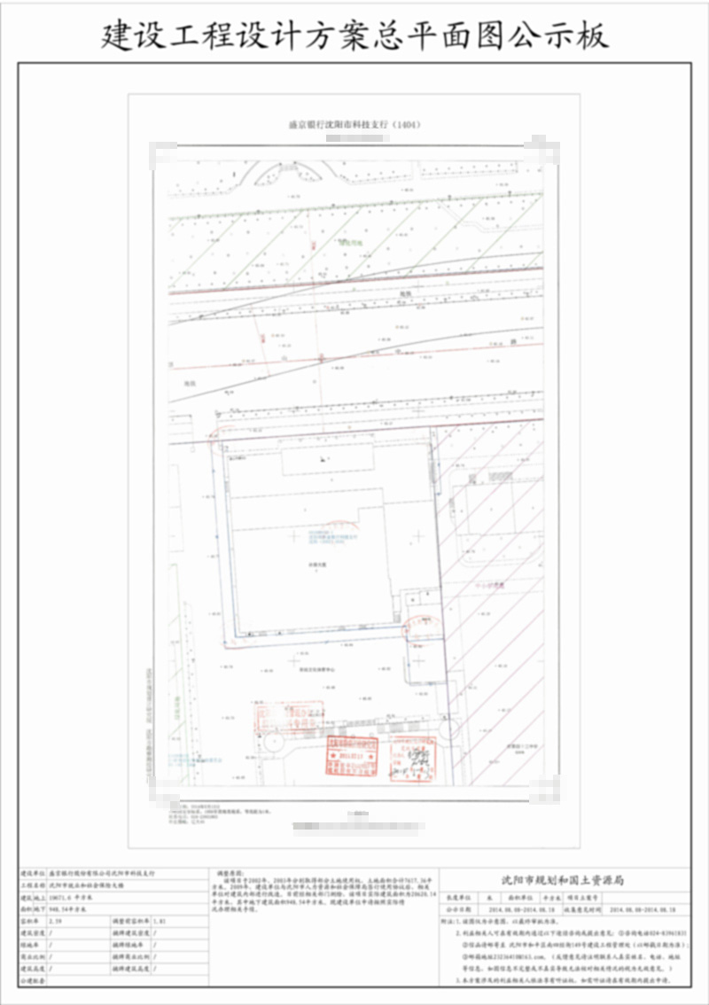 经沈阳市规划和国土资源局建设工程管理处审核,拟批准盛京银行股份有限公司沈阳市科技支行位于皇姑区崇山中路101号的市就业和社会保险服务大楼容积率调整申请,现对该项目调整事宜进行批前公示并征求意见。