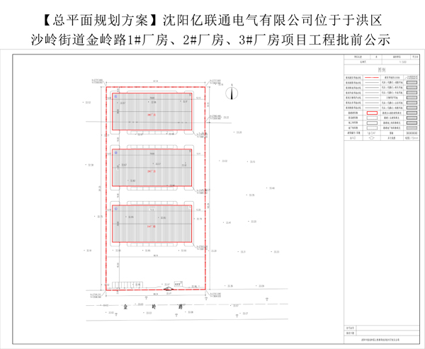 【总平面规划方案】沈阳亿联通电气有限公司位于于洪区沙岭街道金岭路1#厂房、2#厂房、3#厂房项目工程批前公示