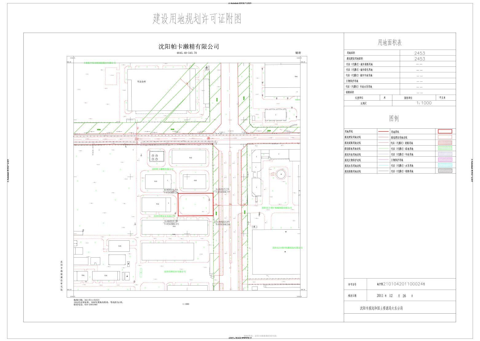 经沈阳市规划和国土资源局大东分局规划科审核,已对沈阳帕卡濑精有限总公司位于沈阳欧盟经济开发区一期的防锈加工车间项目核发了《建设用地规划许可证》公示如下: 建设用地规划许可证号:地字第210104201100024号 用地单位名称:沈阳帕卡濑精有限总公司 用地项目名称:防锈加工车间 用地项目地址:沈阳欧盟经济开发区一期(东至用地界线,西至用地界线,南至用地界线,北至用地界线)(后附图)