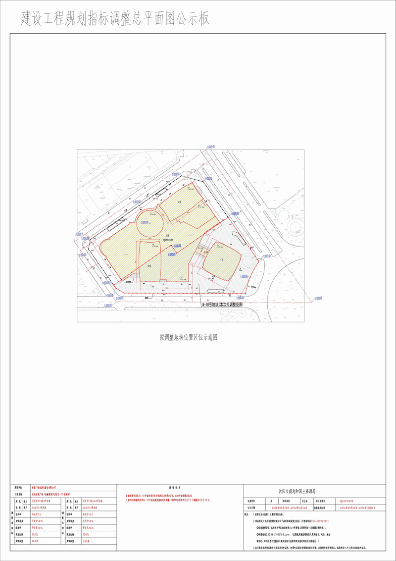 经沈阳市规划和国土资源局建设工程管理处审核,拟调整世贸广场(沈阳)置业有限公司位于金融商贸开发区的商业B-10号地块规划指标,现进行公示并征求意见。