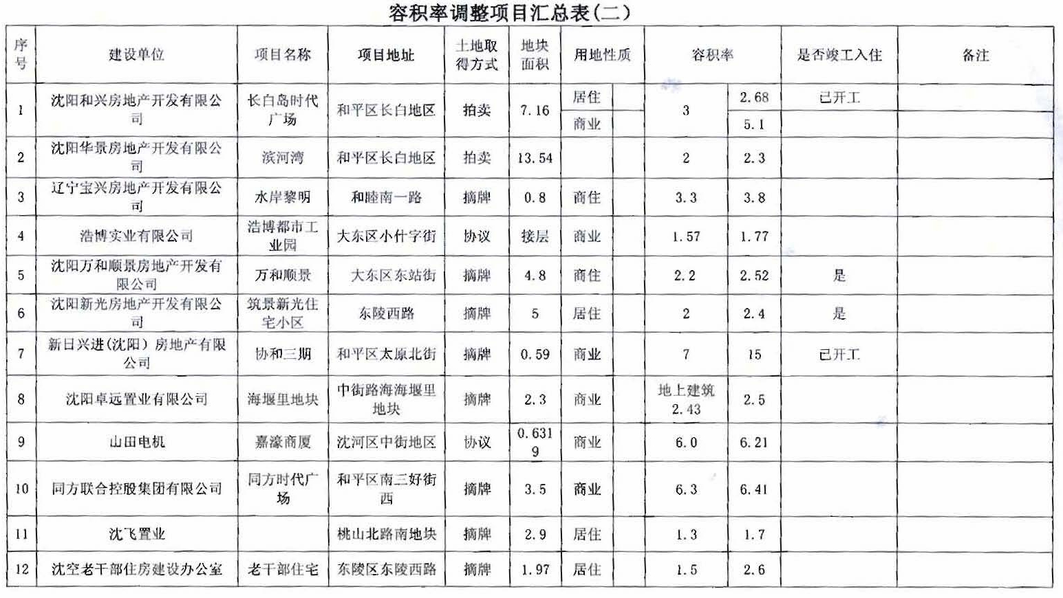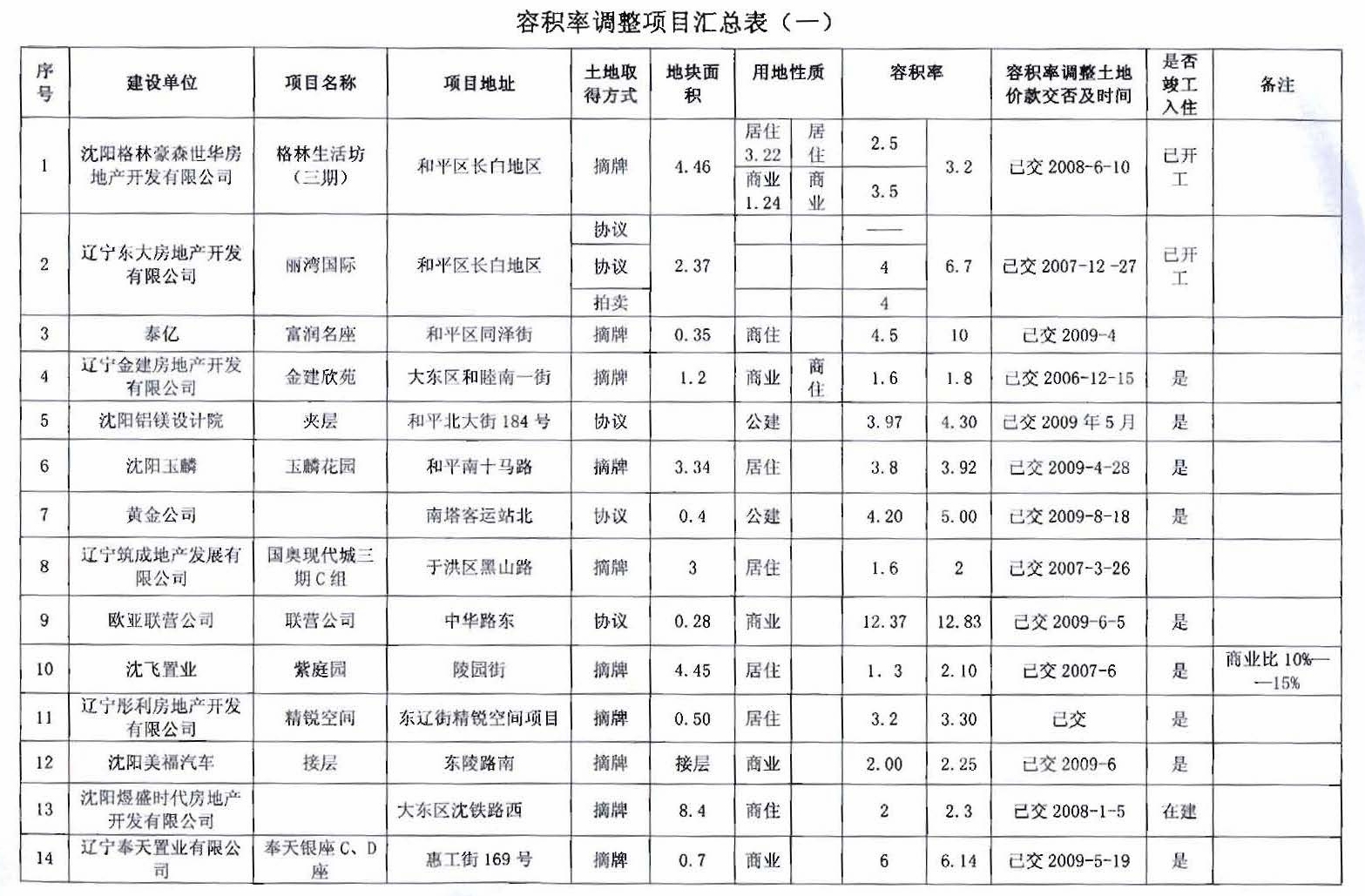 关于沈阳格林豪森世华房地产等项目容积率规划指标的调整公示