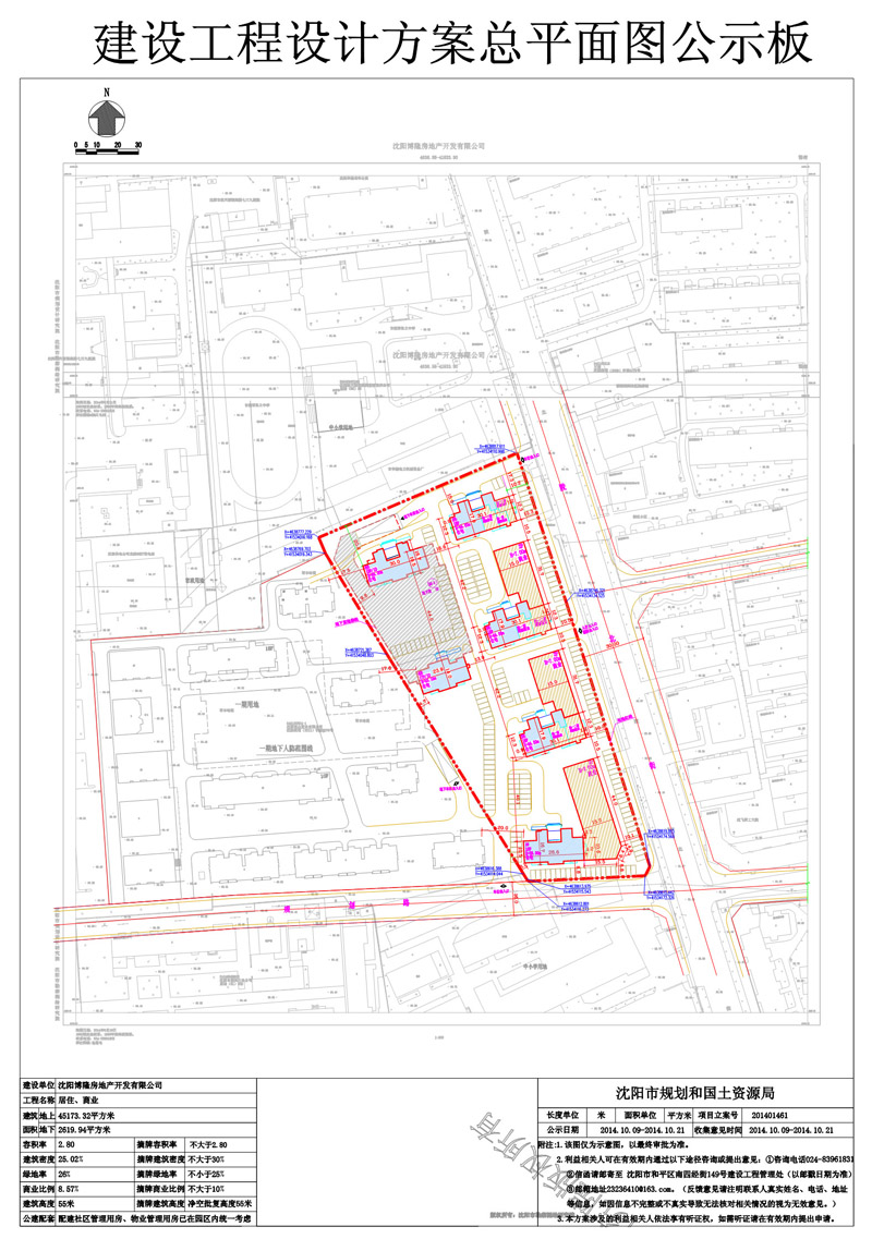 经沈阳市规划和国土资源局建设工程管理处审核,拟批准沈阳博隆房地产开发有限公司位于皇姑区陵北街90号规划方案,现对该项目总平面规划方案进行公示并征求意见。