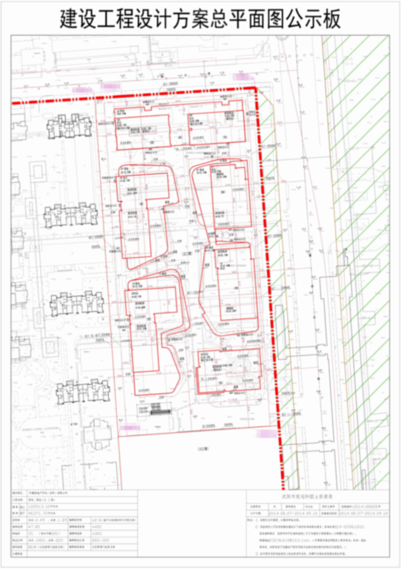 经沈阳市规划和国土资源局建设工程管理处审核,拟批准中耀房地产开发(沈阳)有限公司位于皇姑区黄河北大街西侧的居住、商业(4.1期工程)规划设计方案,现对该项目总平面方案进行公示并征求意见。