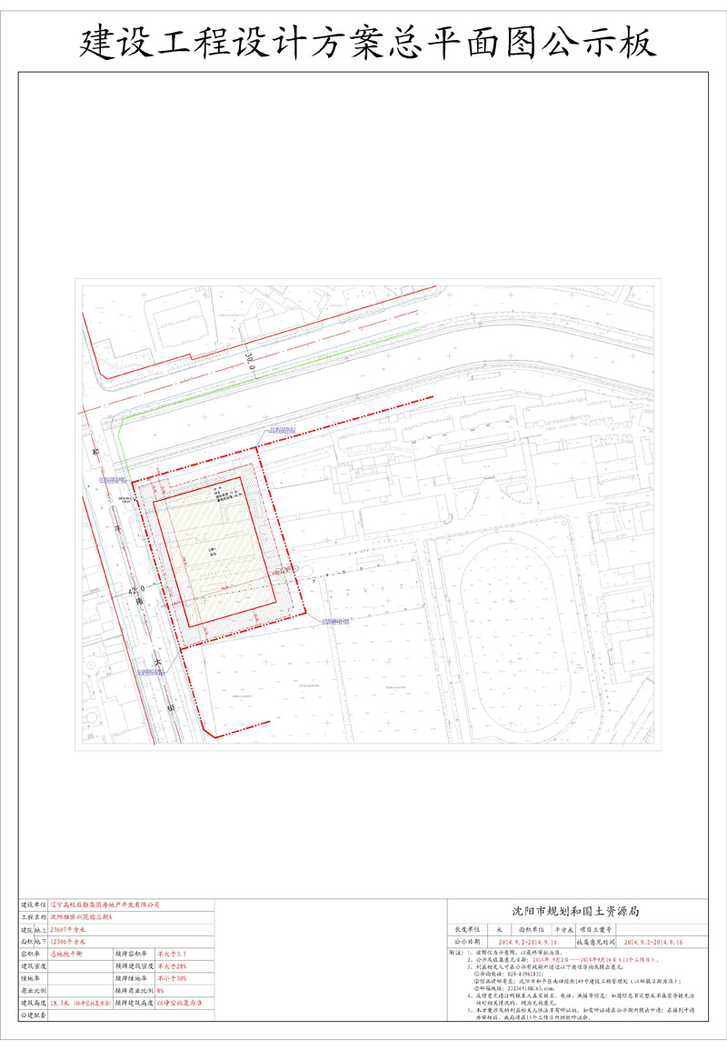 经沈阳市规划和国土资源局建设工程管理处审核,拟批准辽宁高校后勤集团房地产开发有限公司位于和平区和平南大街东地块的商业雅宾利花园三期A规划方案,现对该项目总平面规划方案进行公示并征求意见。
